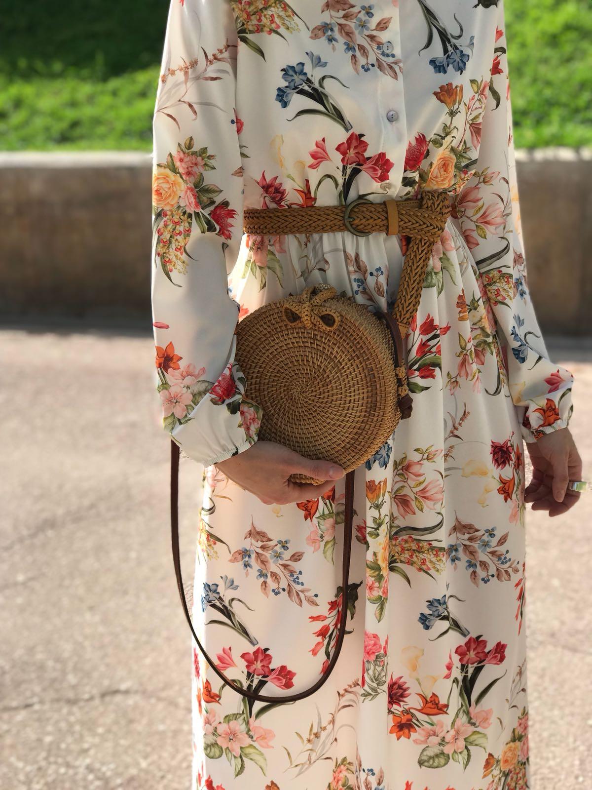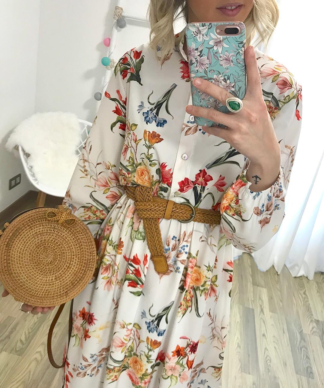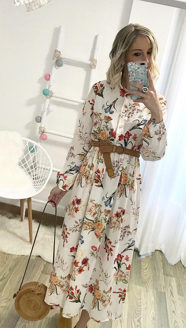 Vestido largo fluido estampado floral, manga larga y cuello mao. Una monada de vestido, cómodo e ideal para primavera y verano.