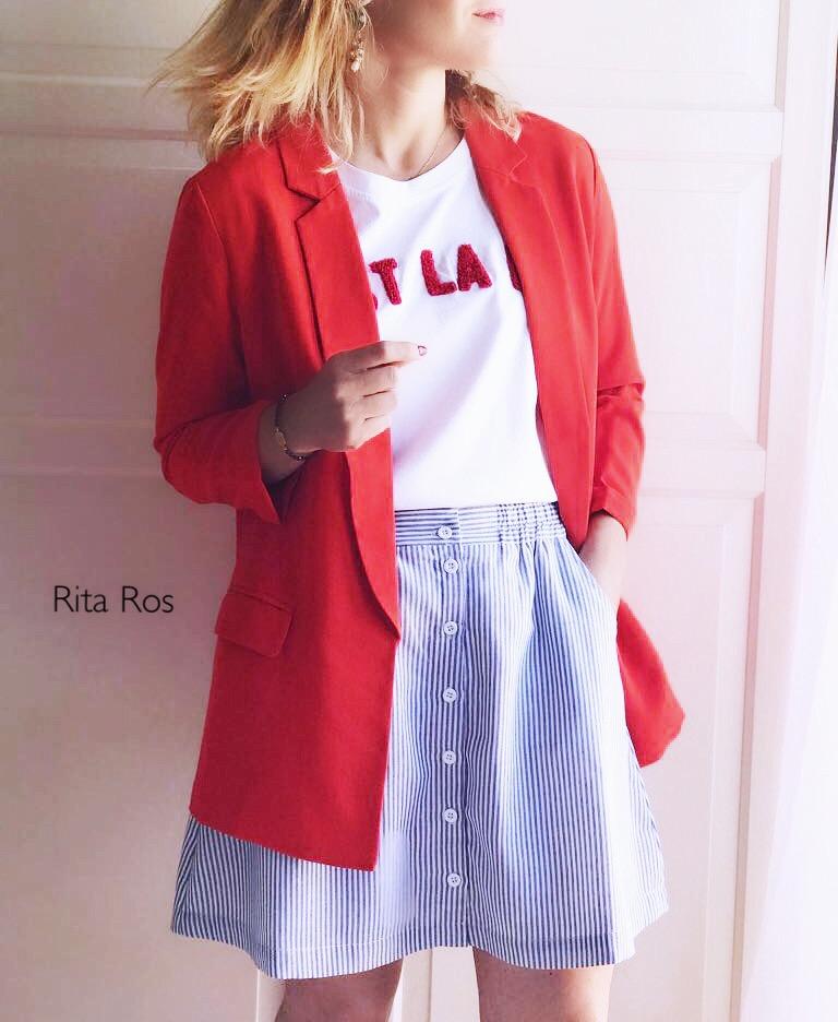 Falda corta estampada de rayas azules.