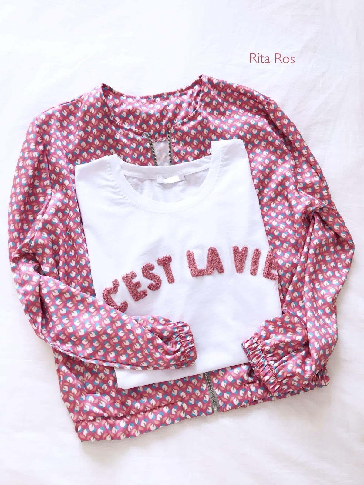 Bomber fluida de manga larga y precioso estampado estilo Naif. Una prenda ideal para un look perfecto de entretiempo.