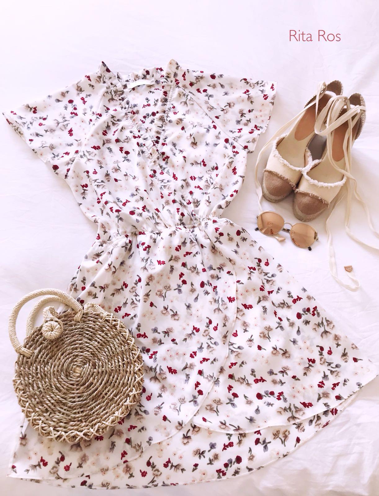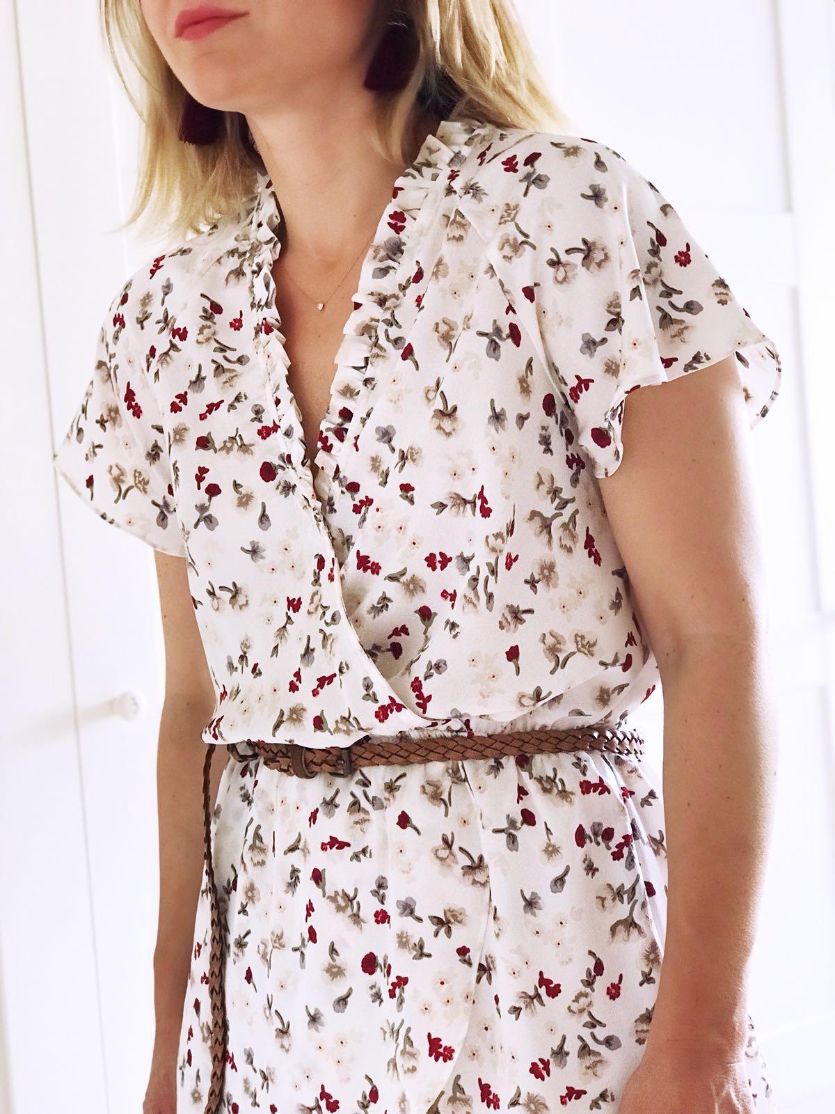 Una monada de vestido con escote cruzado y corchete en la altura del pecho.