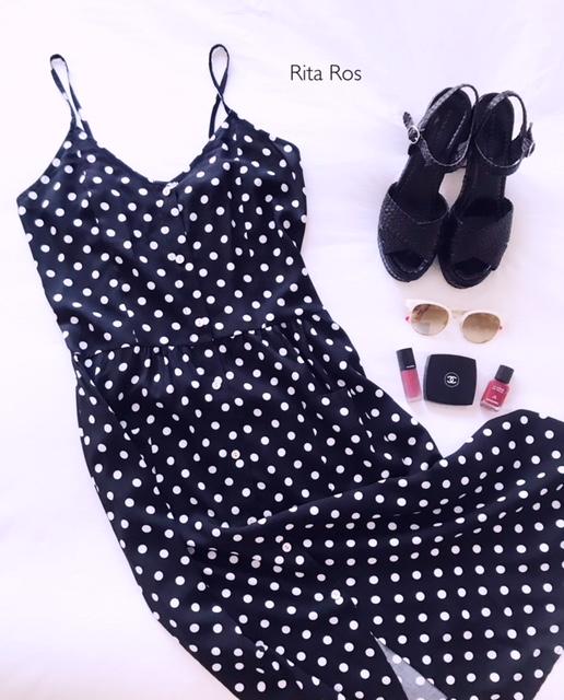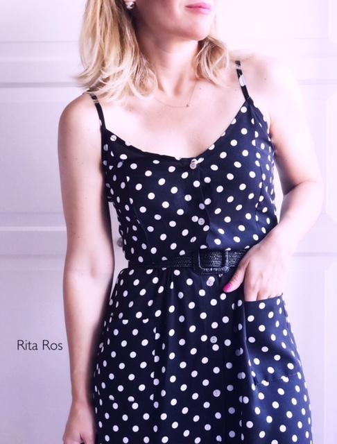 Vestido midi de tirantes estampado de lunares con una caída preciosa. Tiene un corte súper favorecedor
