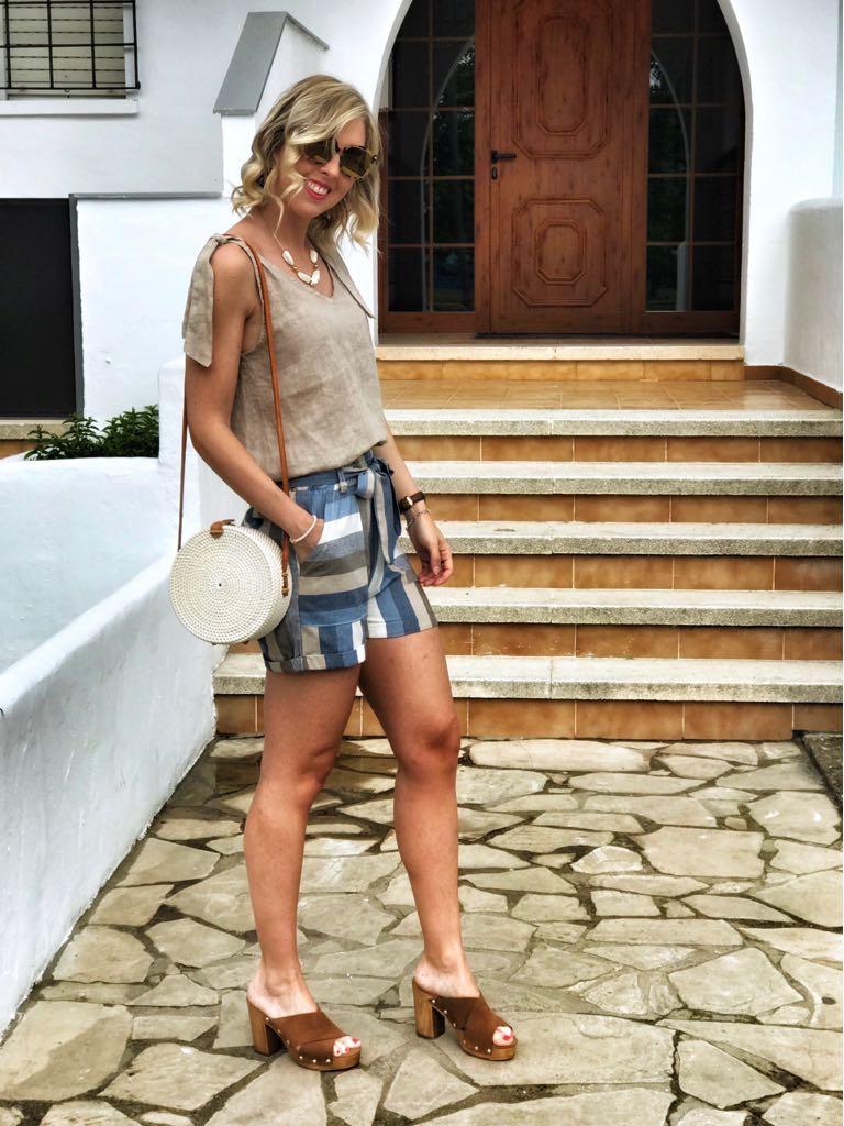 Short de lino estampado de rayas con cinturón para anudar del mismo tejido. Combínalo con nuestra blusa de lino y la combinación es una monada.