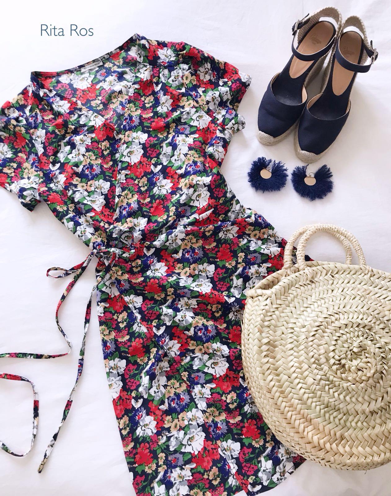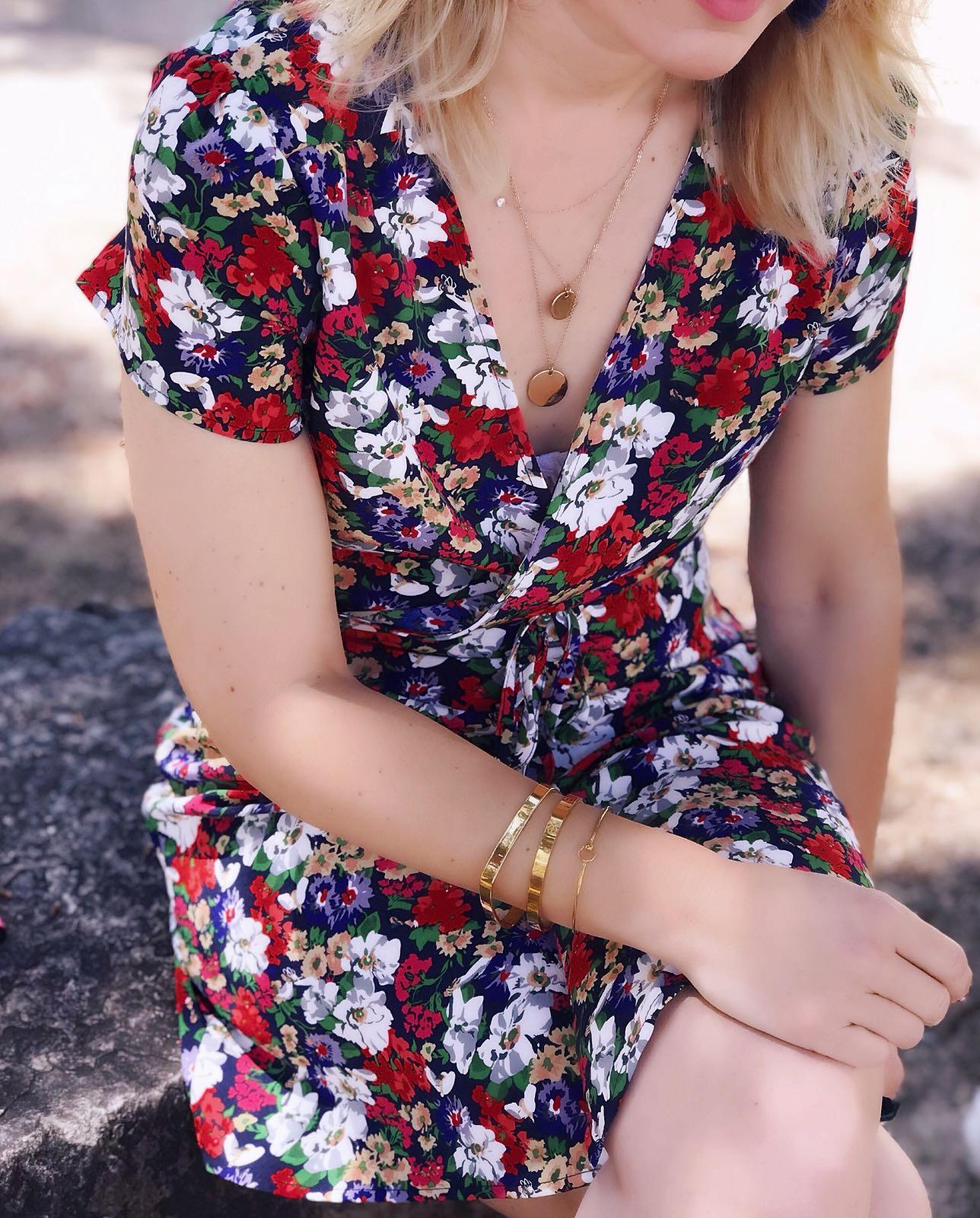 Vestido corto cruzado, estampado de flores. Un vestido súper cómodo que estiliza un montón.