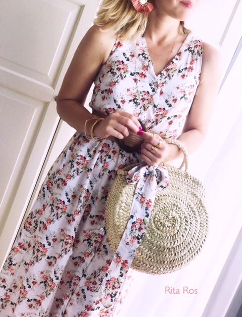 Vestido tobillero estampado de flores con una caída preciosa.