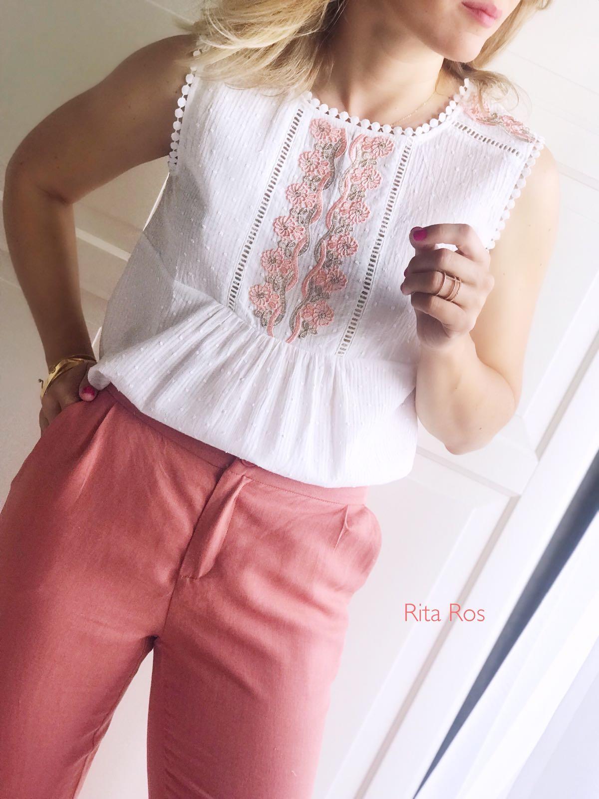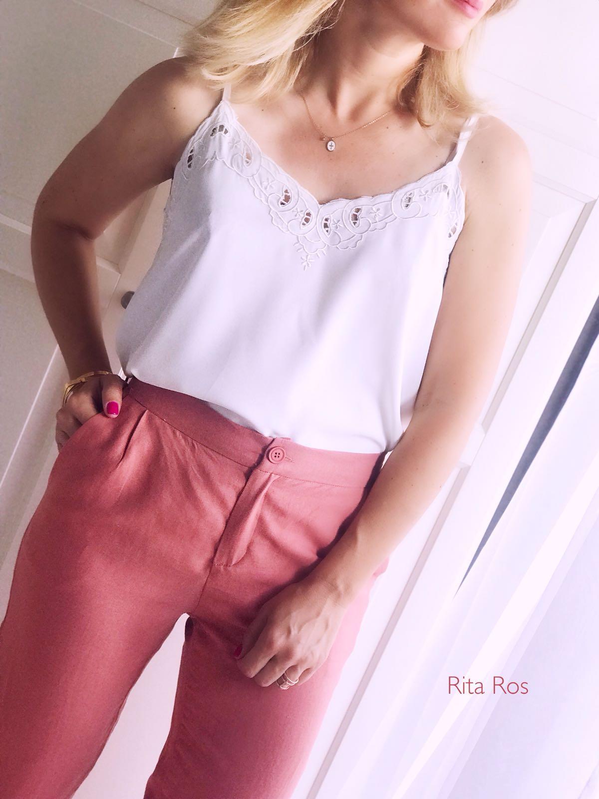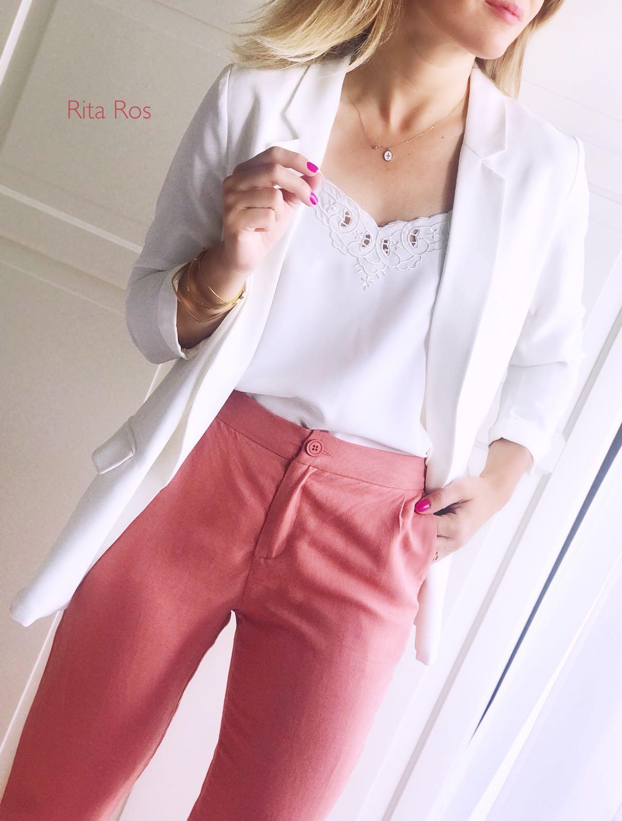 Pantalón largo con un tejido precioso, bolsillos laterales y cerrado con botón y cremallera. Sienta genial.