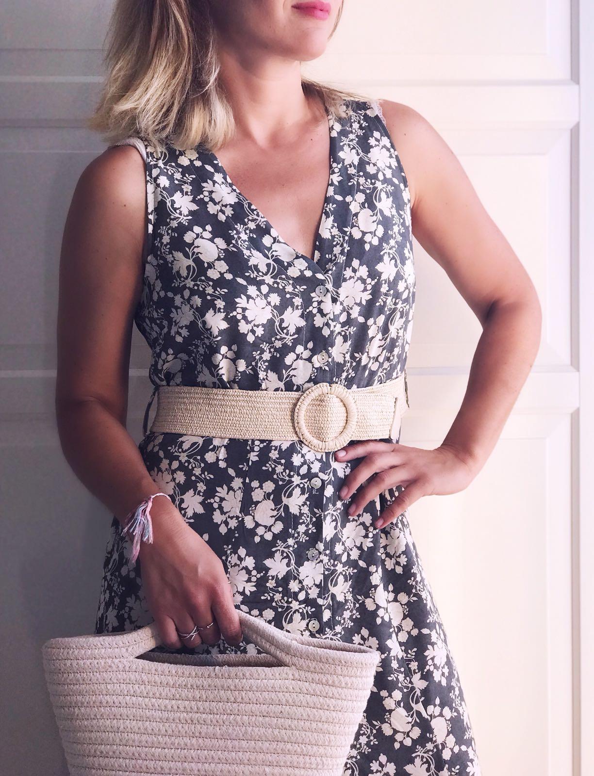Cinturón del mismo tejido y abotonado por delante.