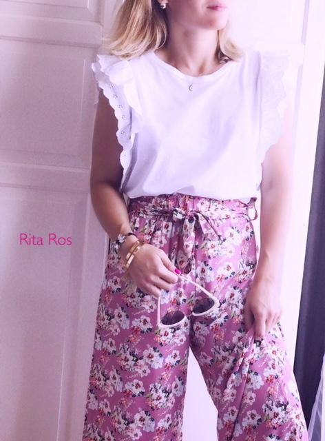 Pantalón largo ancho de corte recto estampado.