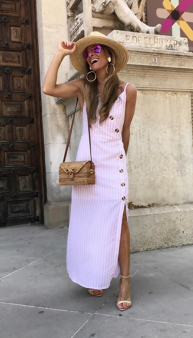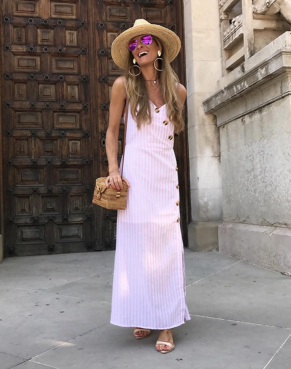 Vestido de tirantes estampado de rayas con detalle botones de madera. Un vestido precioso súper favorecedor.
