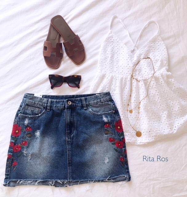Top troquelado de tirantes con detalle cintura fruncida y elástico en la espalda.