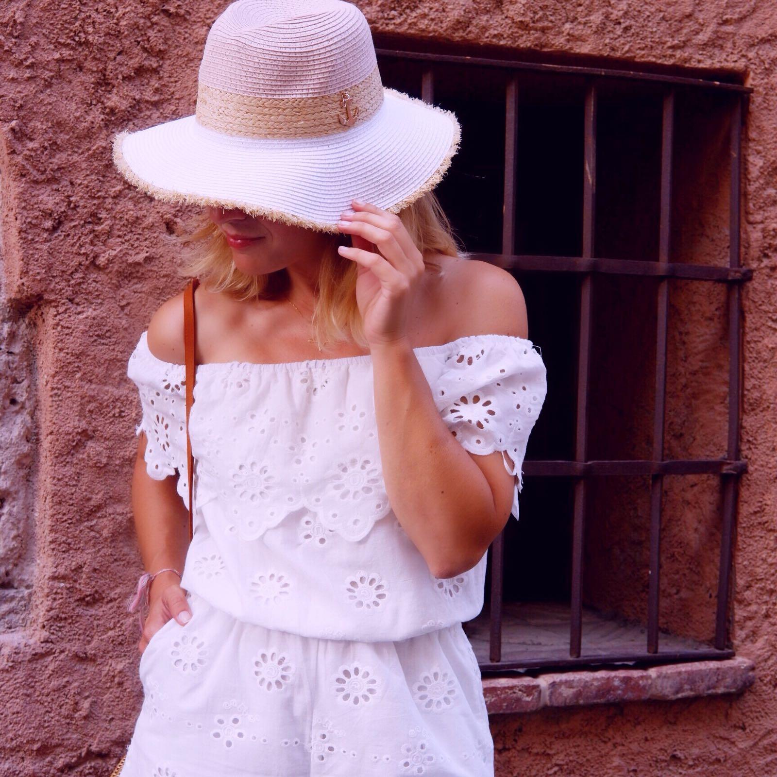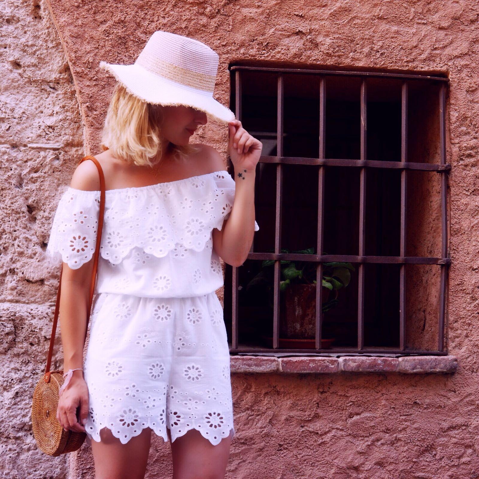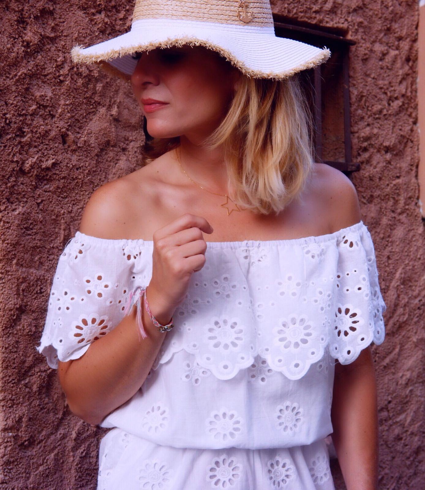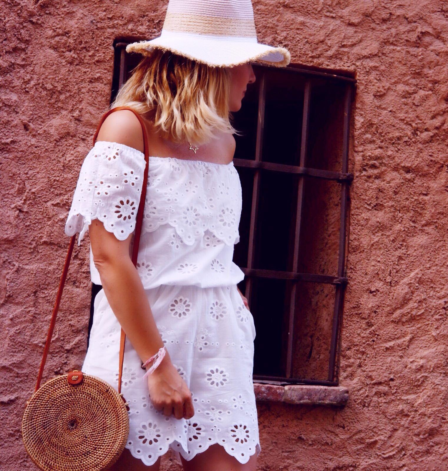 Mono troquelado corto con detalle volante, para llevar con o sin hombros descubiertos.