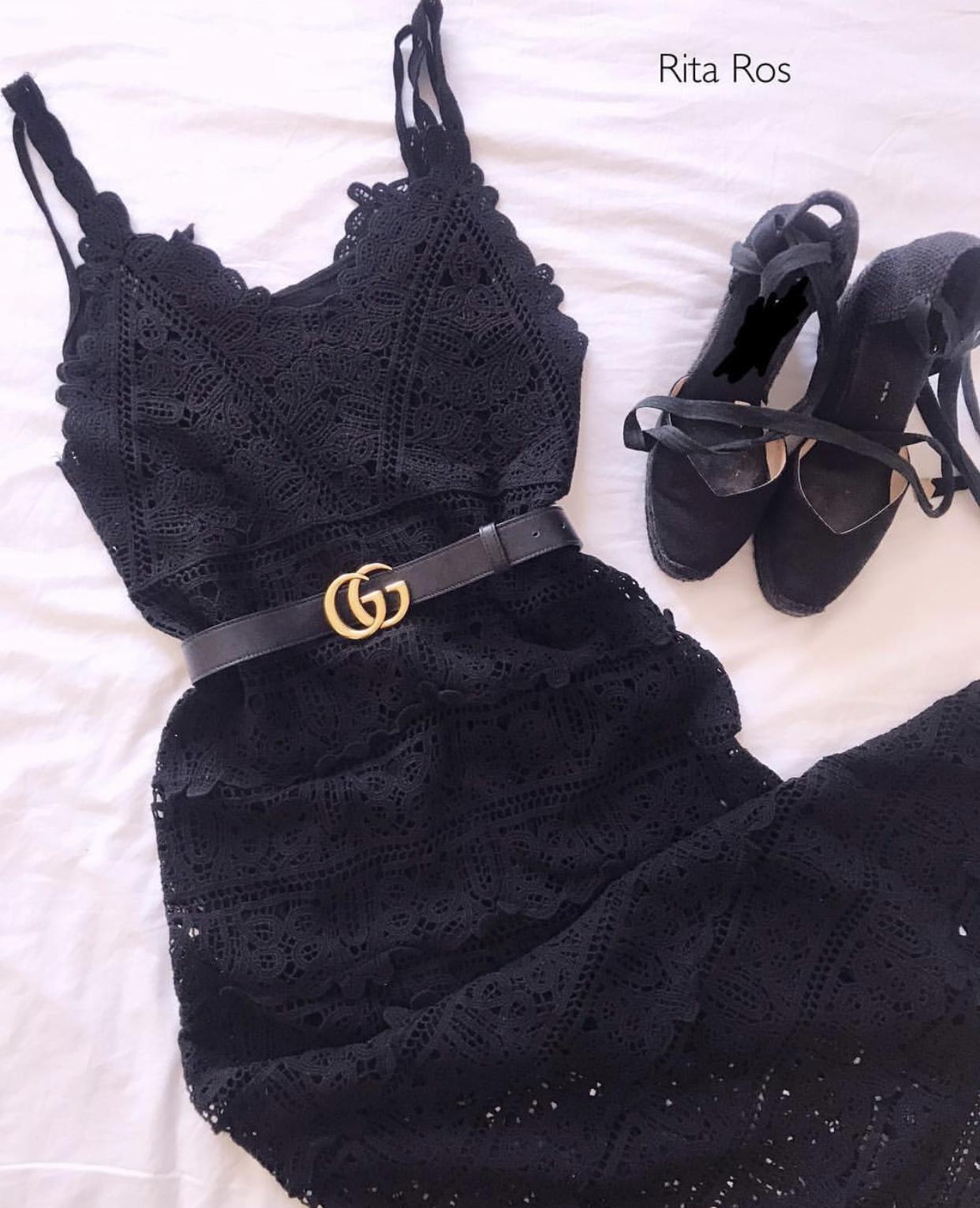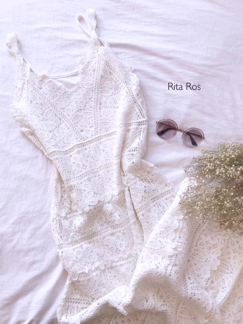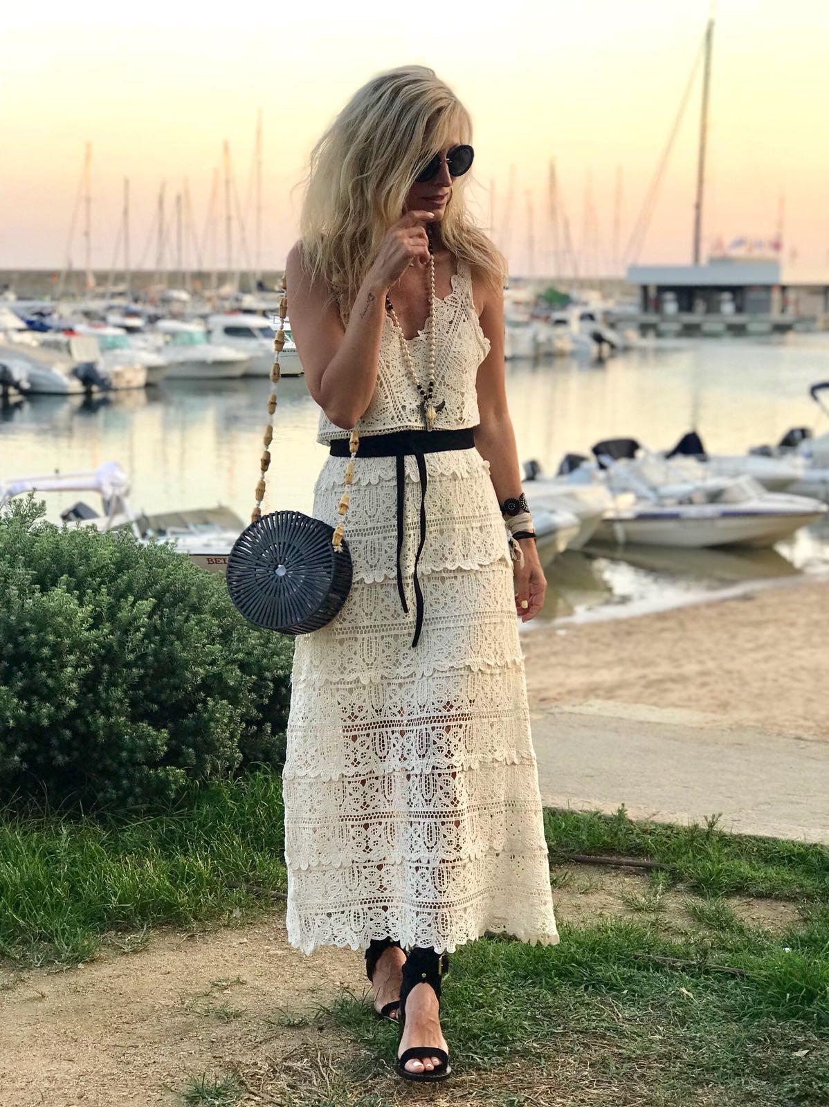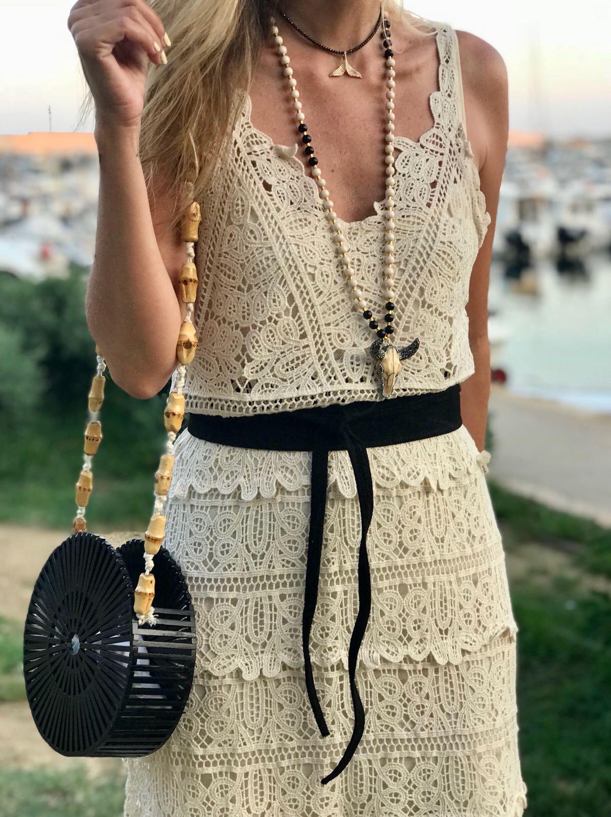 Vestido largo de tirantes y escote en pico todo de crochet. Un vestido súper elegante e imprescindible.