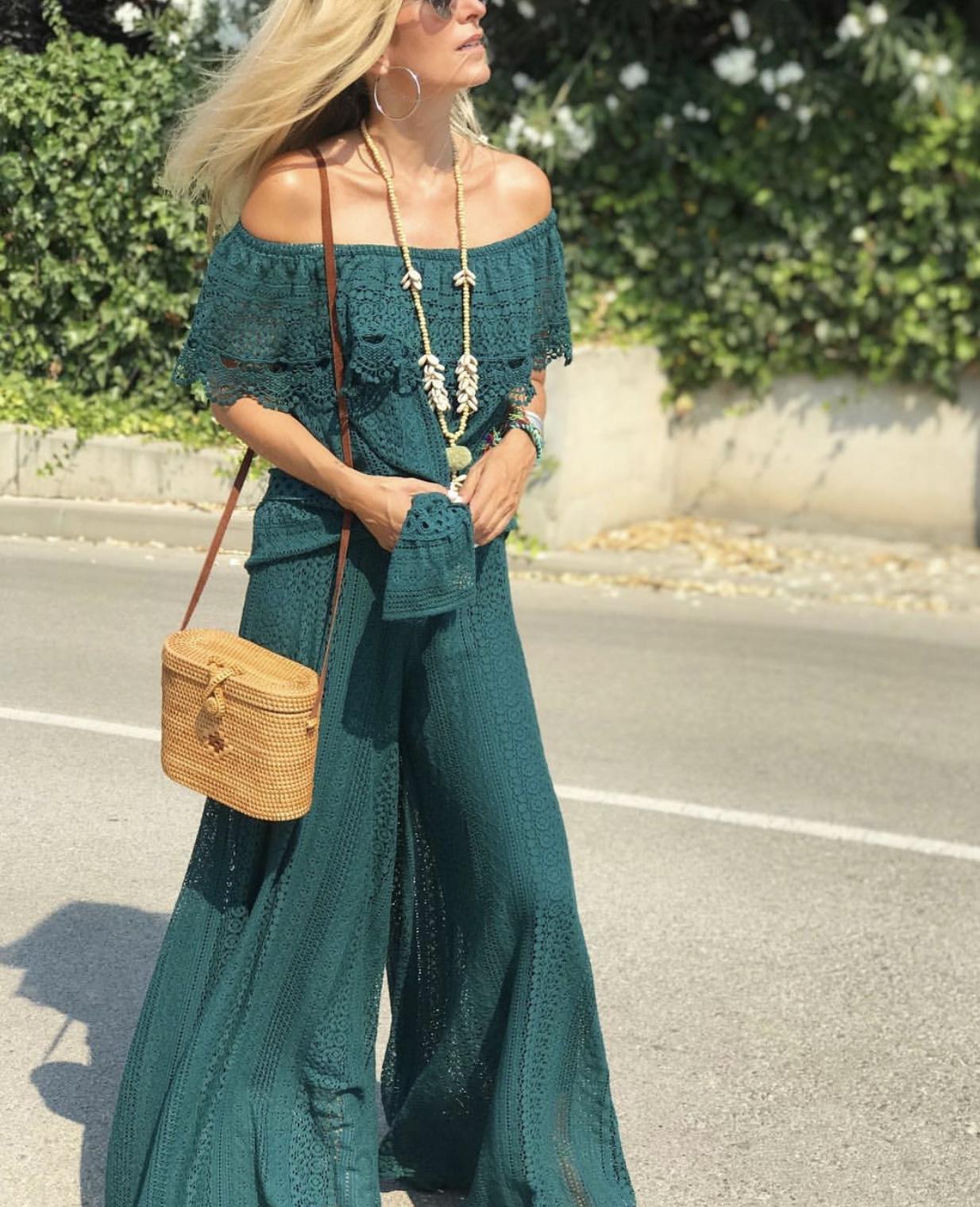 Pantalón ancho de encaje muy cómodo. Combínalo con el top a conjunto y queda el look ideal.