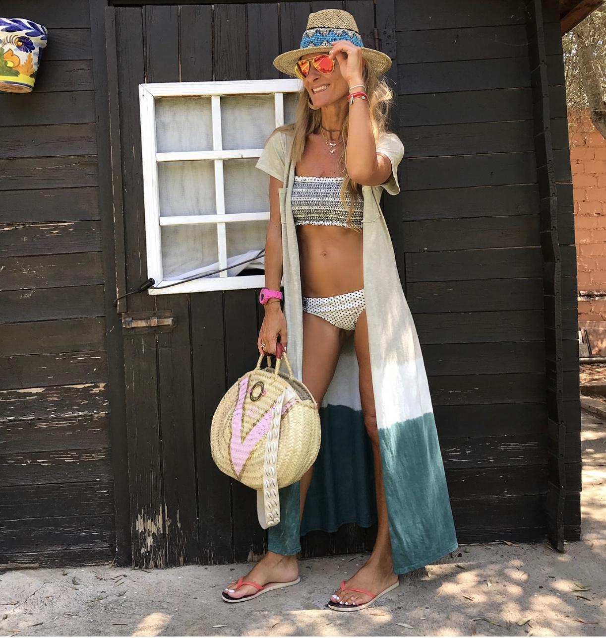 Pasada de vestido en tonos granates y verdes con botones y bolsillos en el escote.