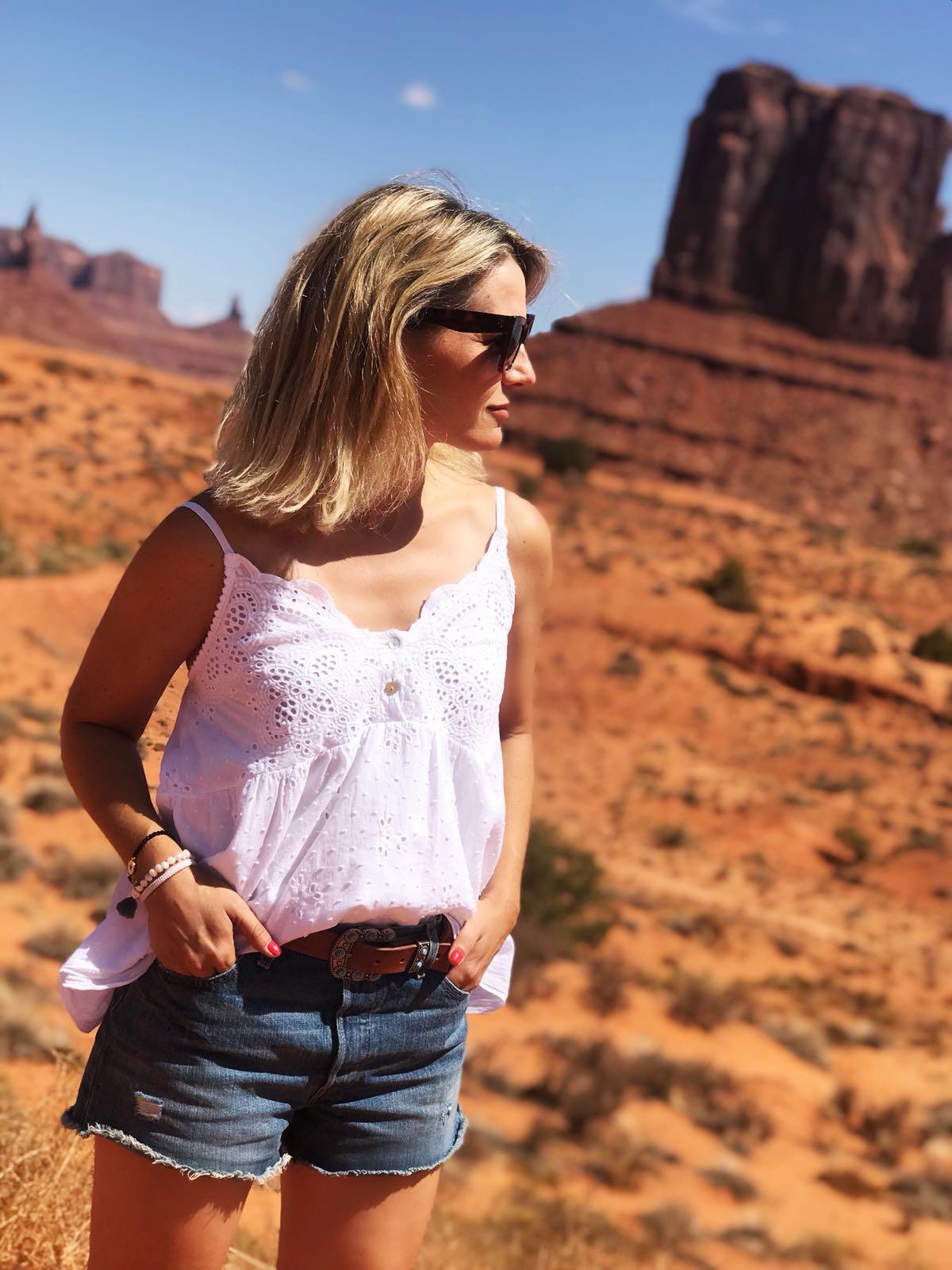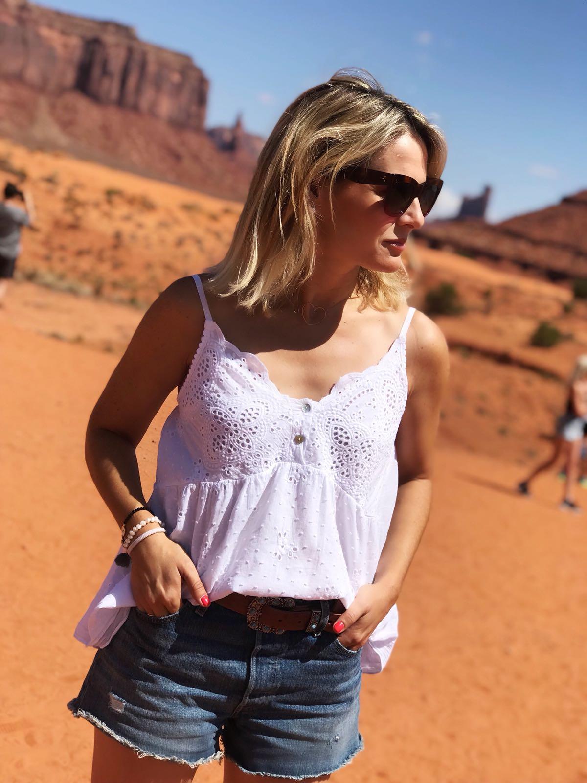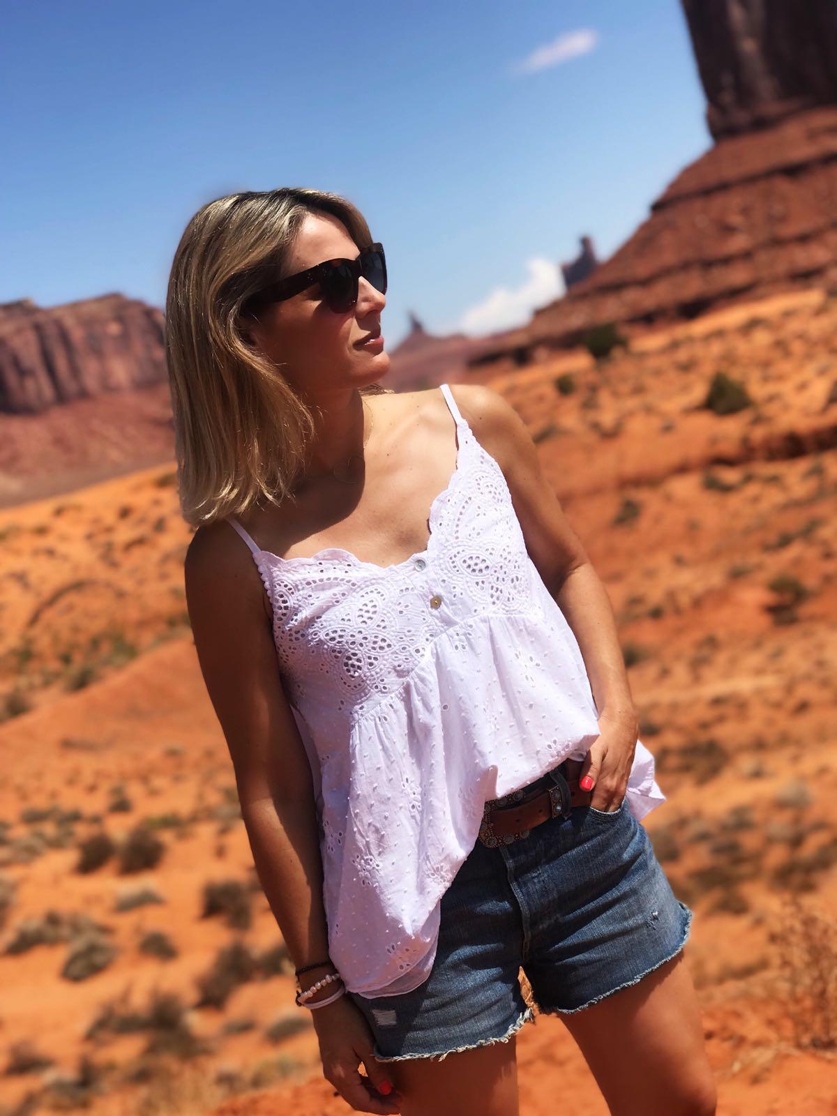 Blusa canesú con escote bordado y cuerpo de tejido plumetti. Una monada de blusa que hemos combinado con unos shorts y queda genial