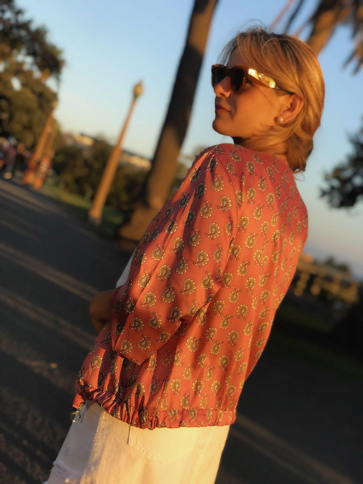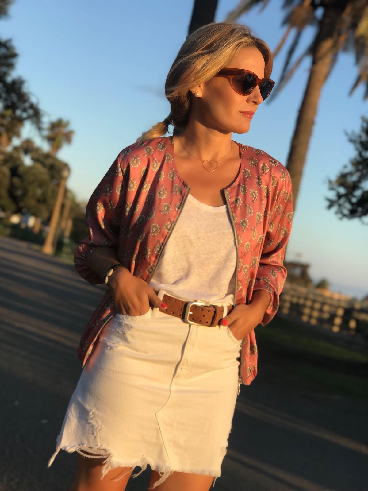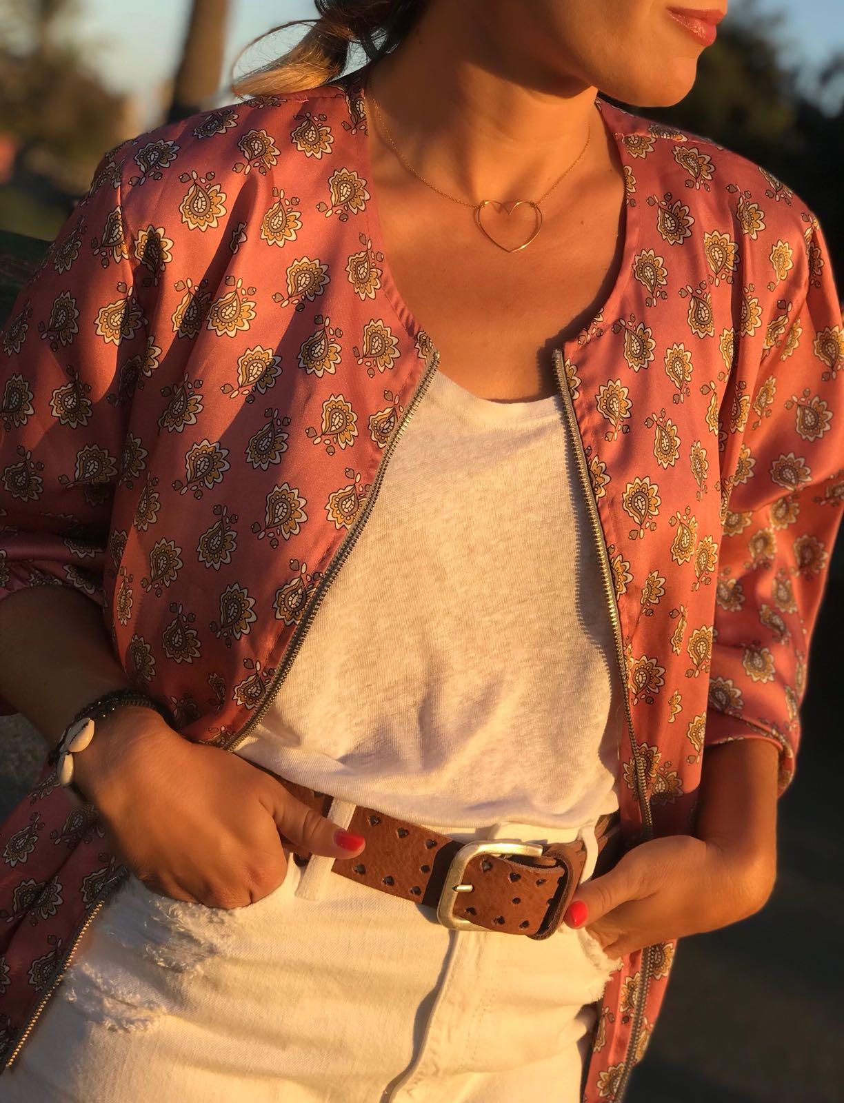 Una monada de chaqueta tipo bomber de cuello redondo y manga larga con un estampado precios. Una prenda ideal para entretiempo.