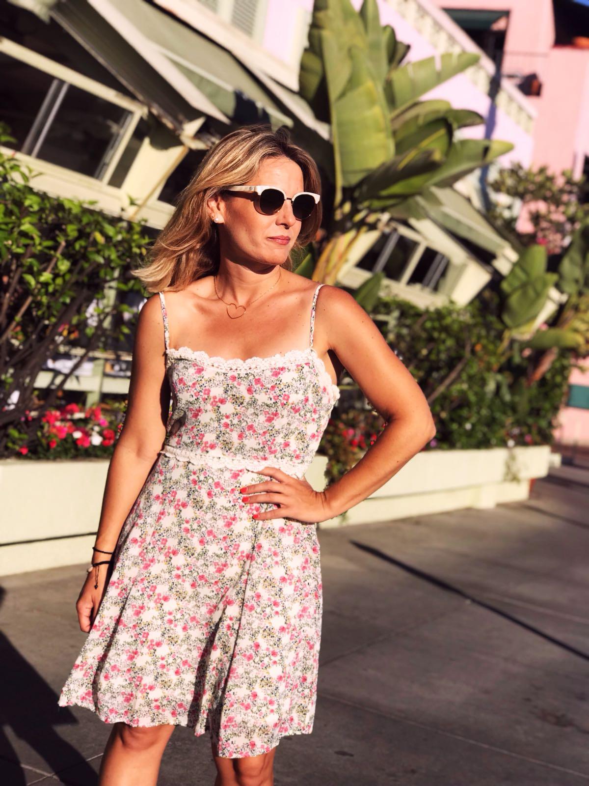 Vestido de gasa corto y de tirante fino, estampado de florecitas y detalle bordado en cintura y escote. El estampado es una monada, combínalo con una chaqueta vaquera y queda monísimo!