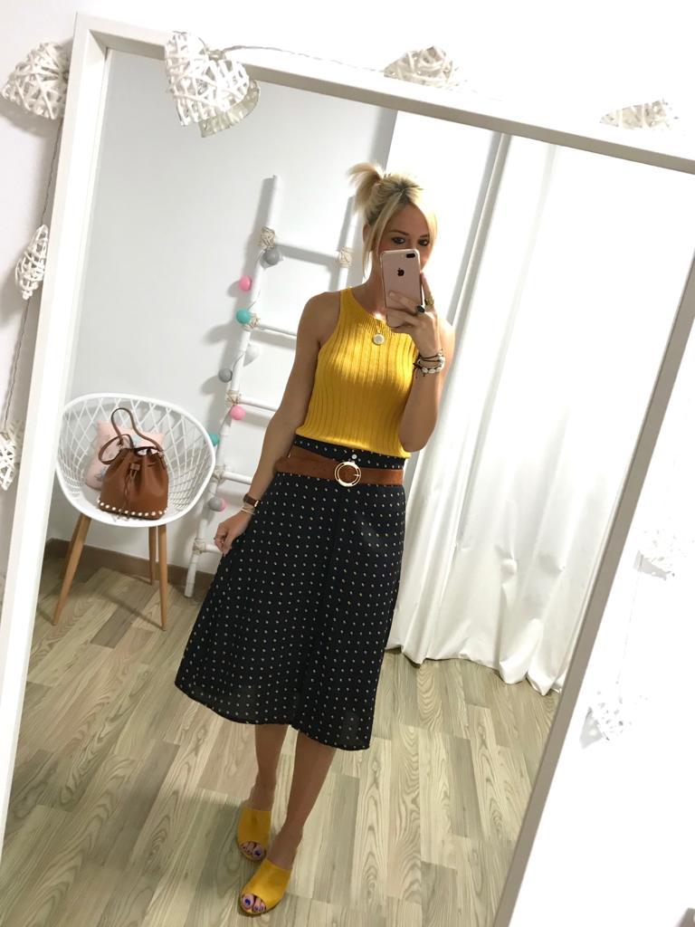 Top de canalé de tirantes y cuello redondo. Se adapta genial.