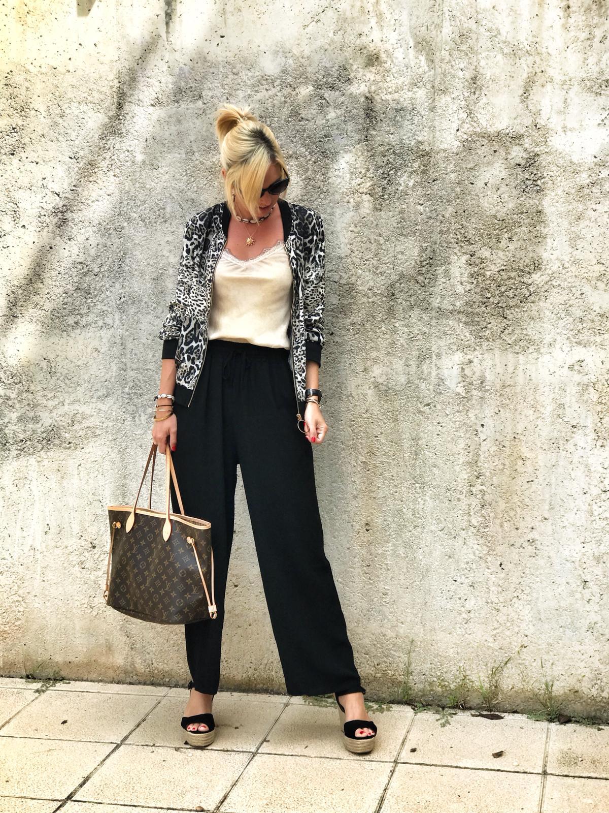 Una monada de Chaqueta con puños y cuello en negro elastico y una monada de estampado.