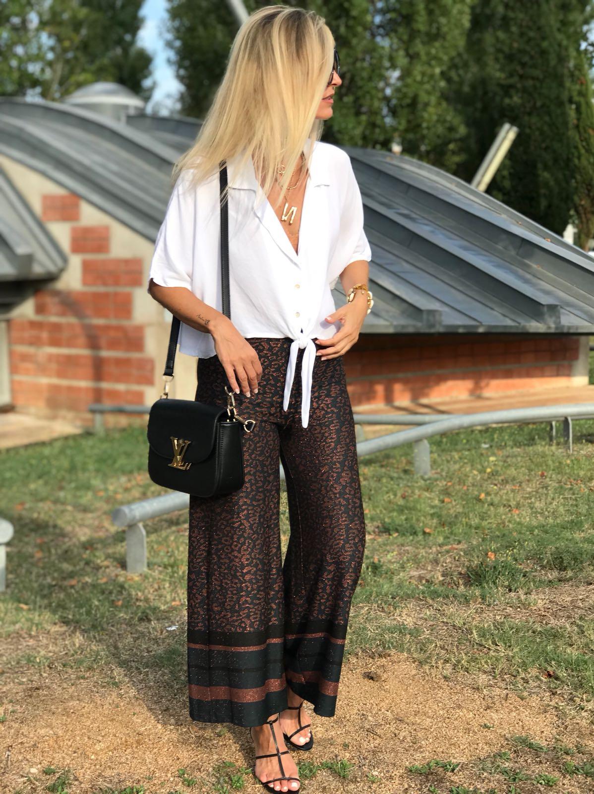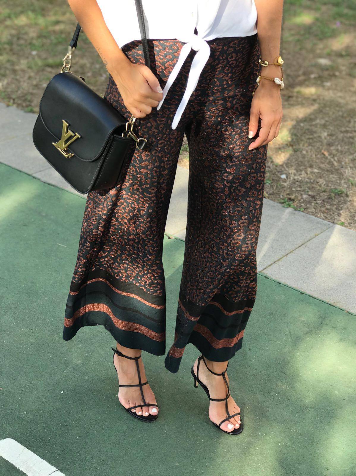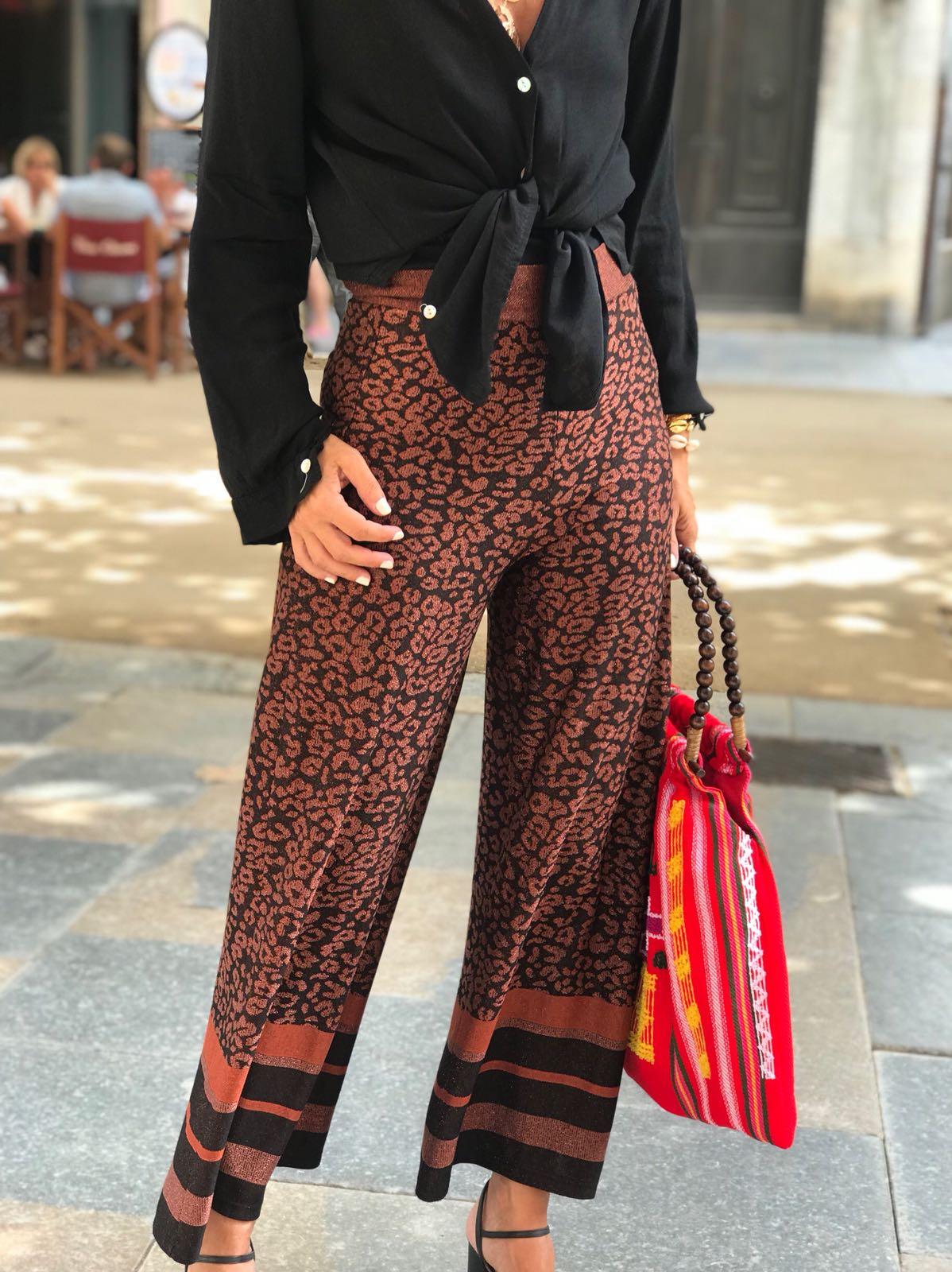 Pantalón de punto ancho con un estampado precioso. Combínalo con nuestra blusa Angie en color negro y te encantará el resultado.