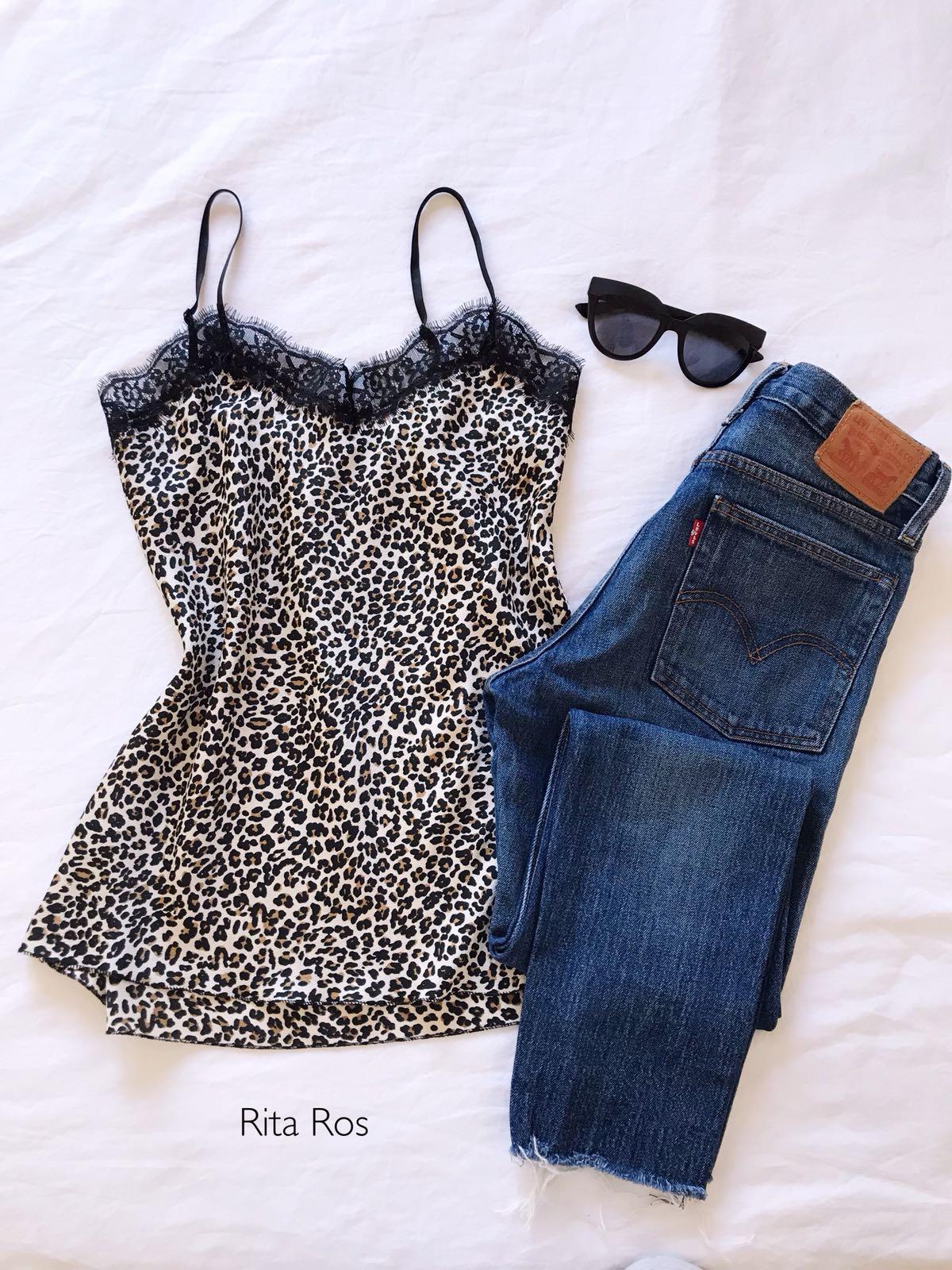 Una monada de top de tirantes estampado Animal Print con detalle encaje en escote.