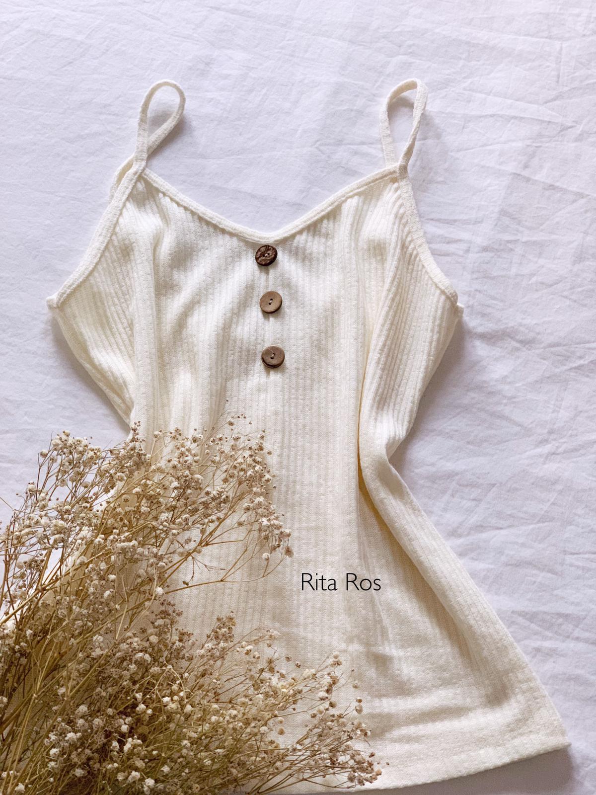 Top de canalé de tirantes con detalle botones de madera. Combínalo con nuestra americana Cambrige y te encantará el resultado.