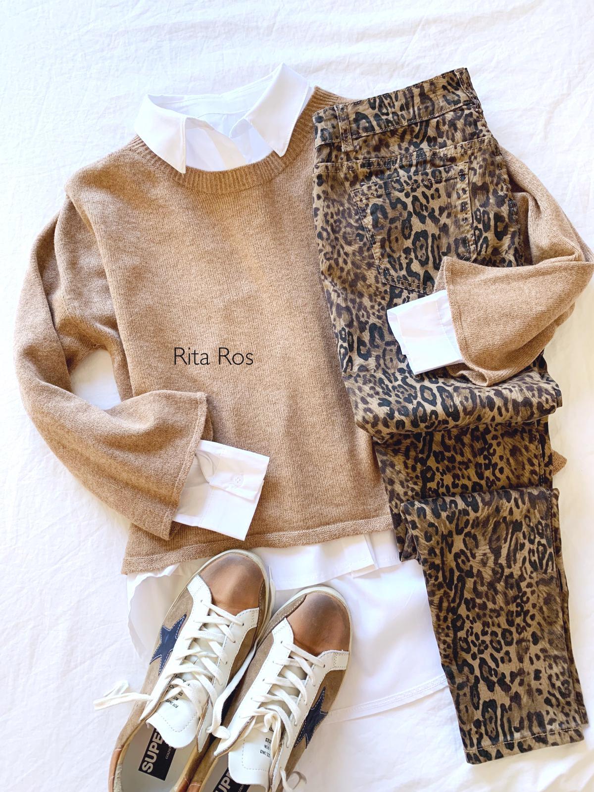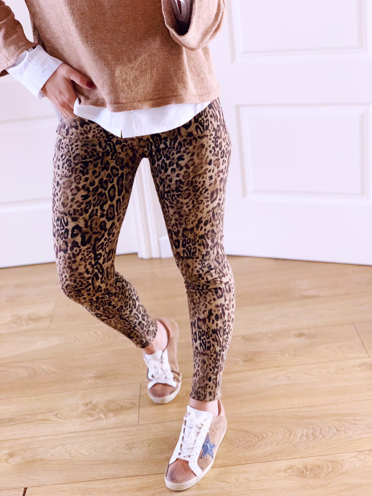 Pantalón pitillo de tiro medio estampado de leopardo.
