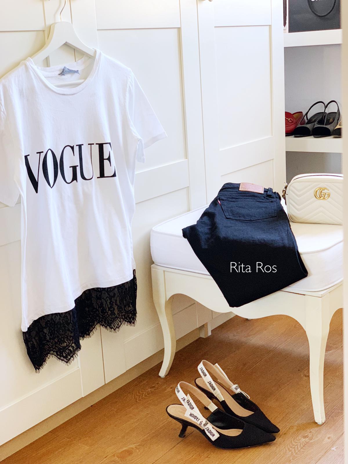Camiseta de cuello redondo y manga corta con detalle encaje en el bajo.