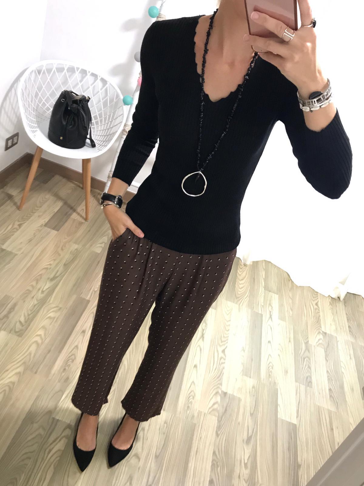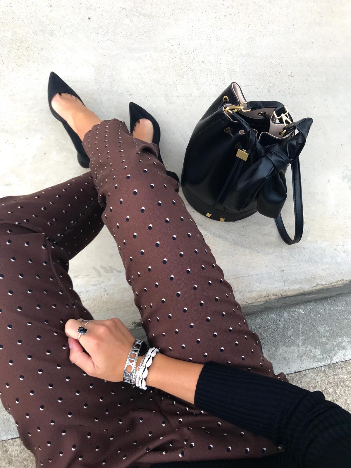 Pantalón fluido de corte anchito estampado de mini lunares. Bolsillos la terales.