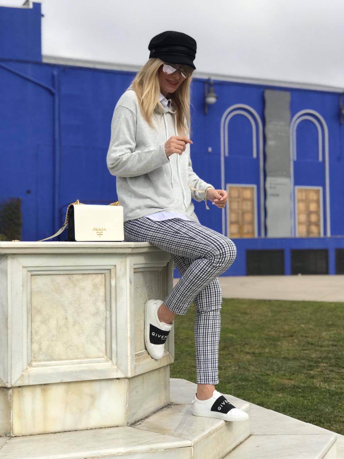 Pantalón pitillo estampado de cuadros vichy. Bolsillos delanteros y falso bolsillo de vivo en espalda.