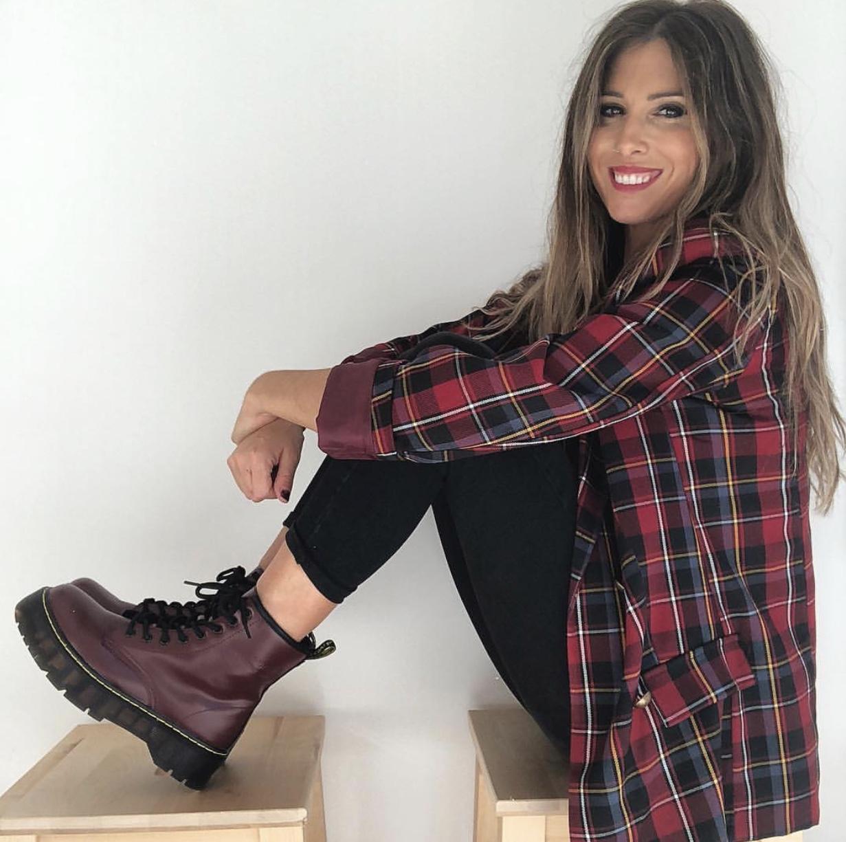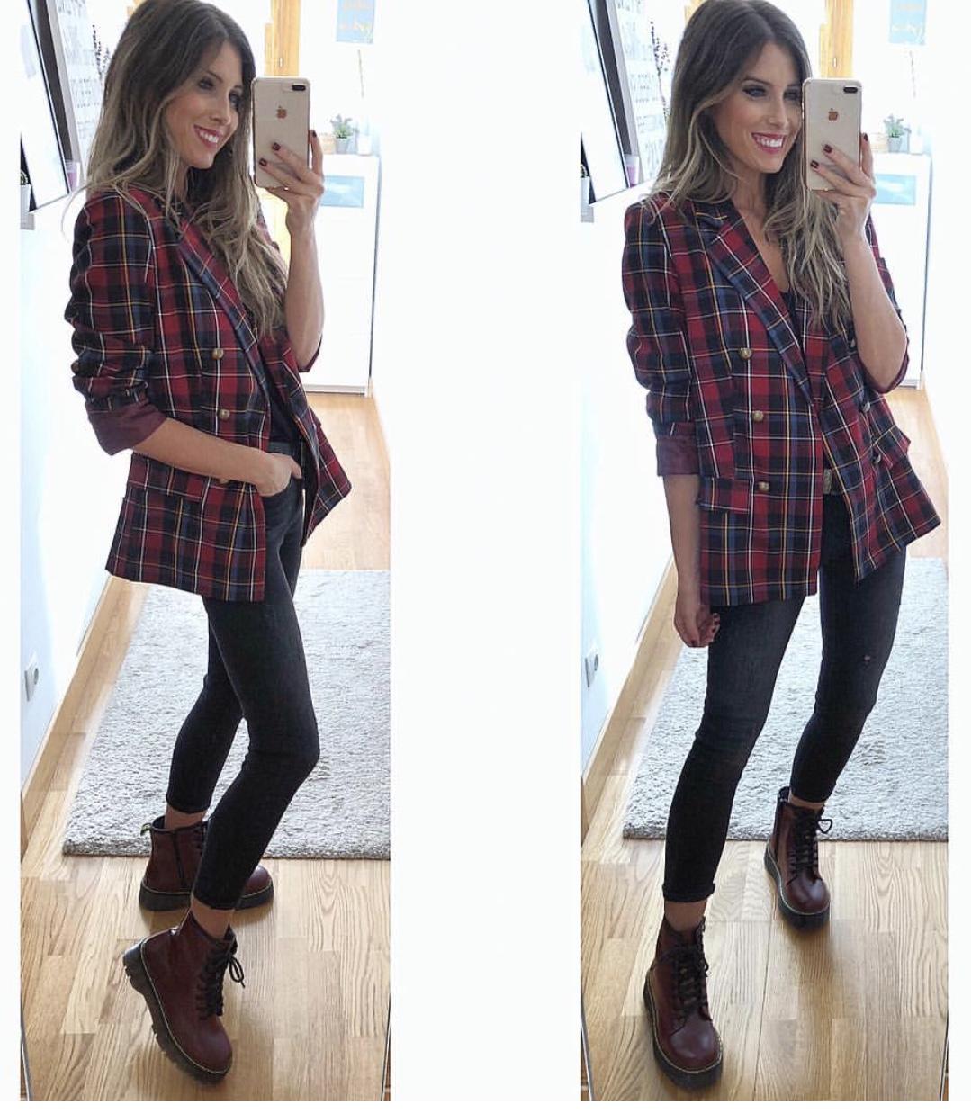 Americana con cuello y solapa estampada de cuadros.
