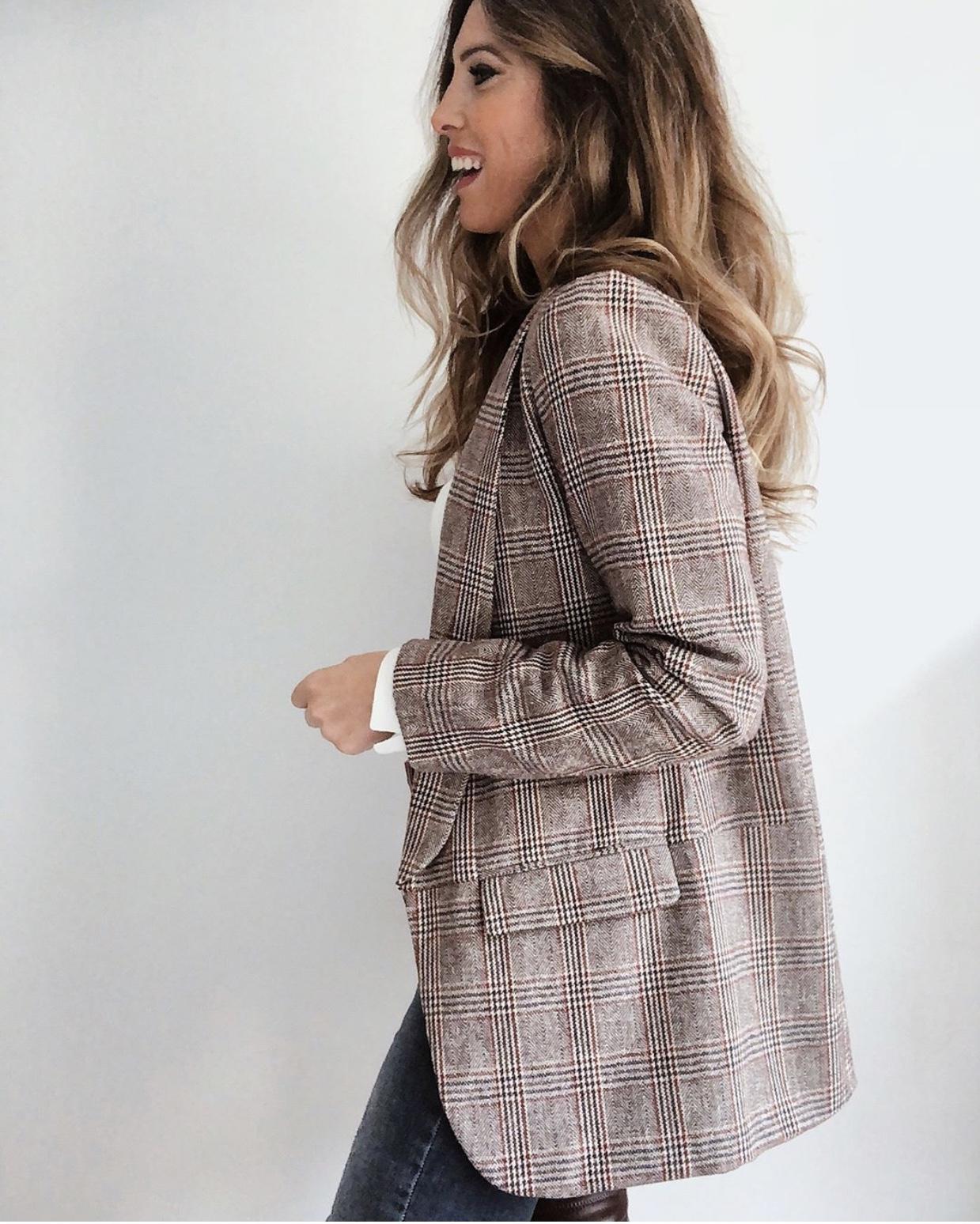 Americana de manga larga, solapas tipo smoking y falsos bolsillos delanteros con solapa. Una prenda perfecta para entretiempo para completar tus looks.