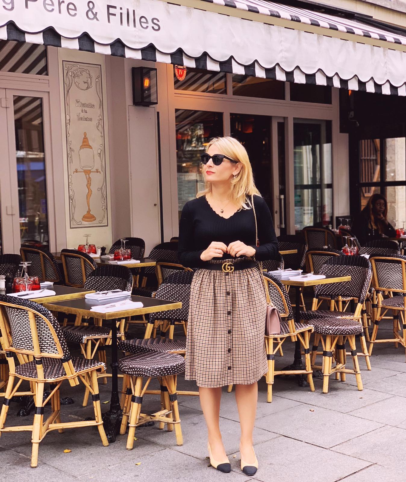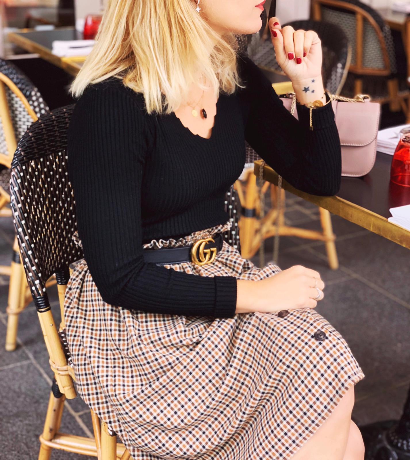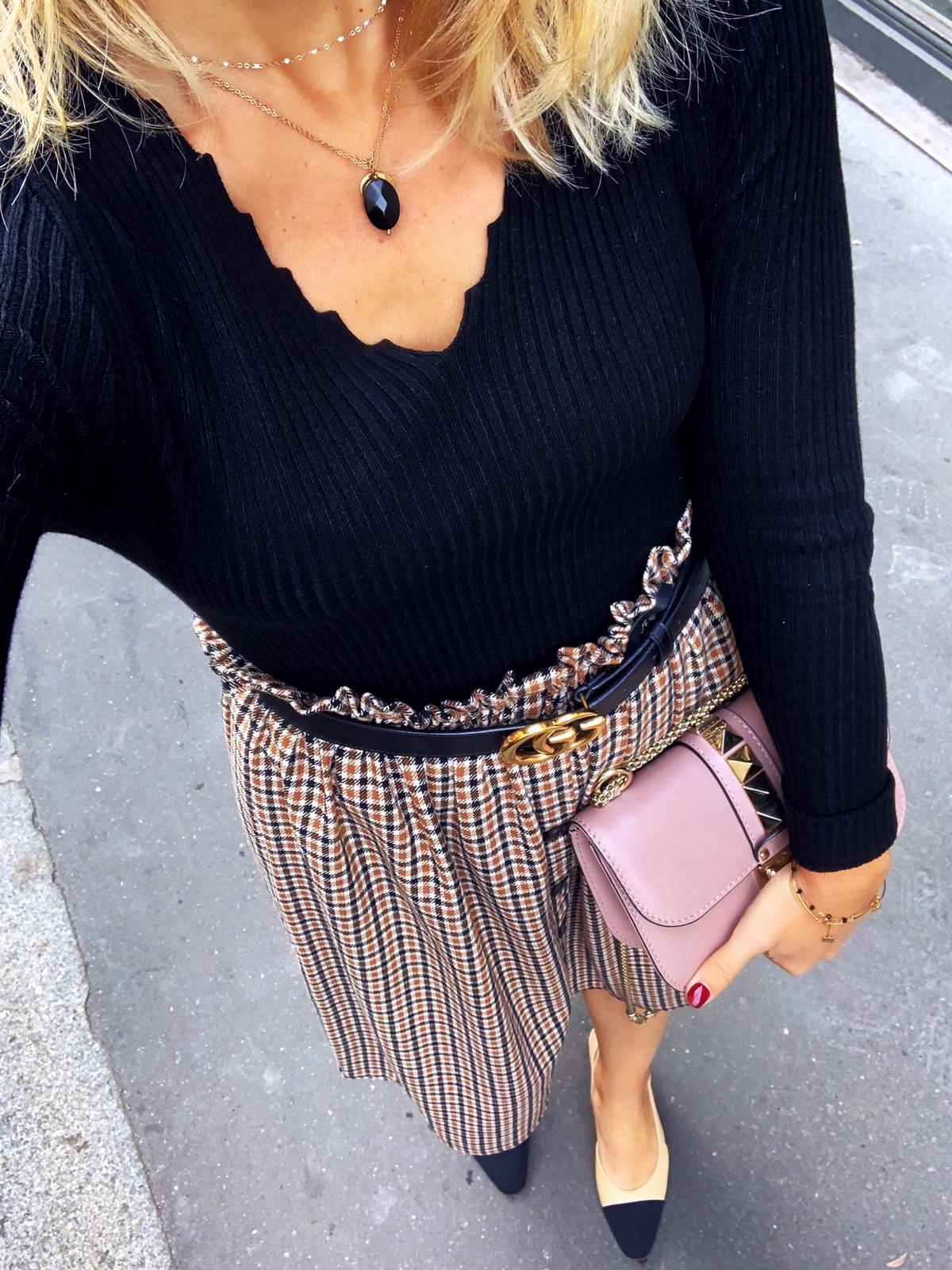Falda Midi con cintura fruncida elástica estampada de cuadros con detalle botones decorativos. Combínala con nuestro jersey Marie o Lisse en color negro y te encantará el resultado.