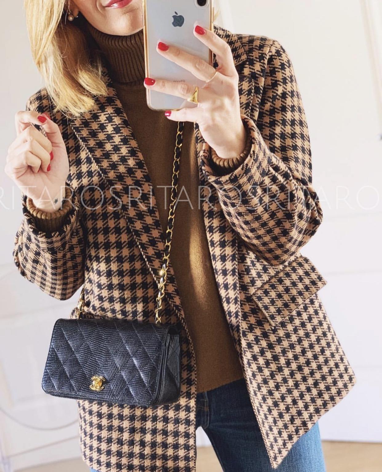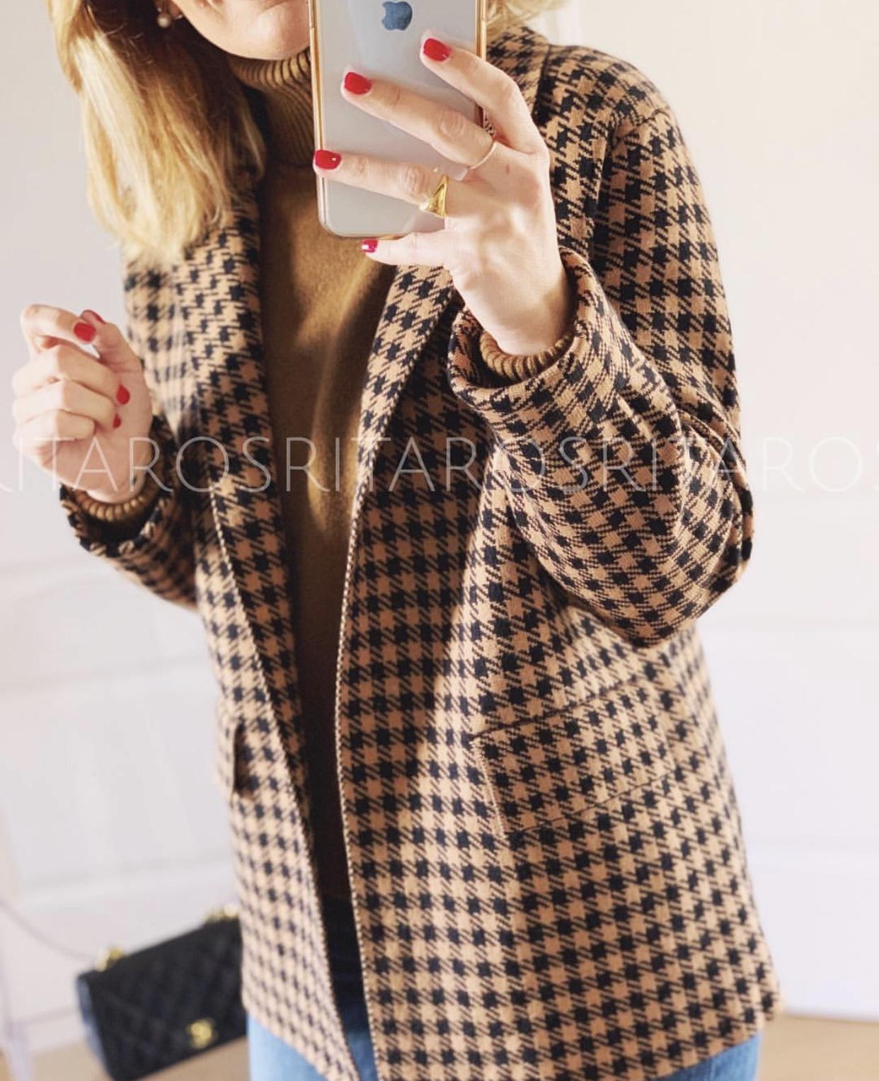 Chaqueta con cuello y solapa, manga larga estampada de pato de gallo con un tejido maravilloso. Combínala con nuestra blusa Margot en color negro, unos jeans y te encantará el resultado.
