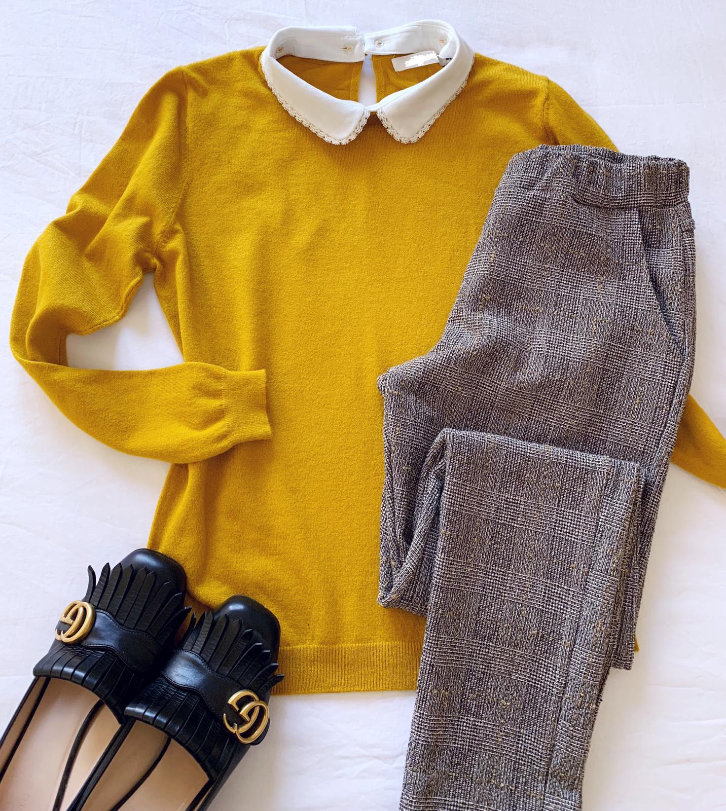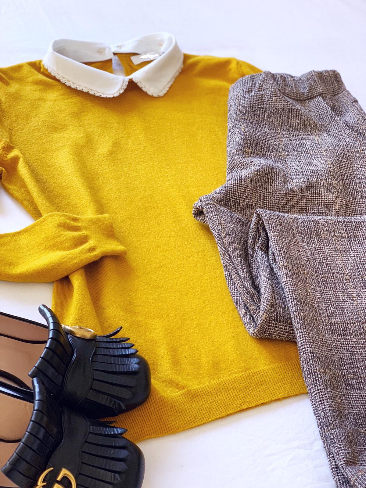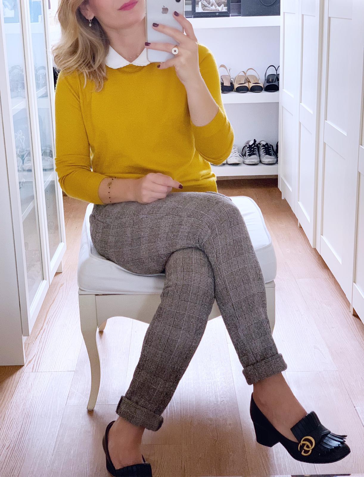 Pantalón largo estampado de cuadros con cintura elástica. Un pantalón comodísimo. Combínalo con nuestro jersey Martina en color Mostaza y te encantará el resultado.