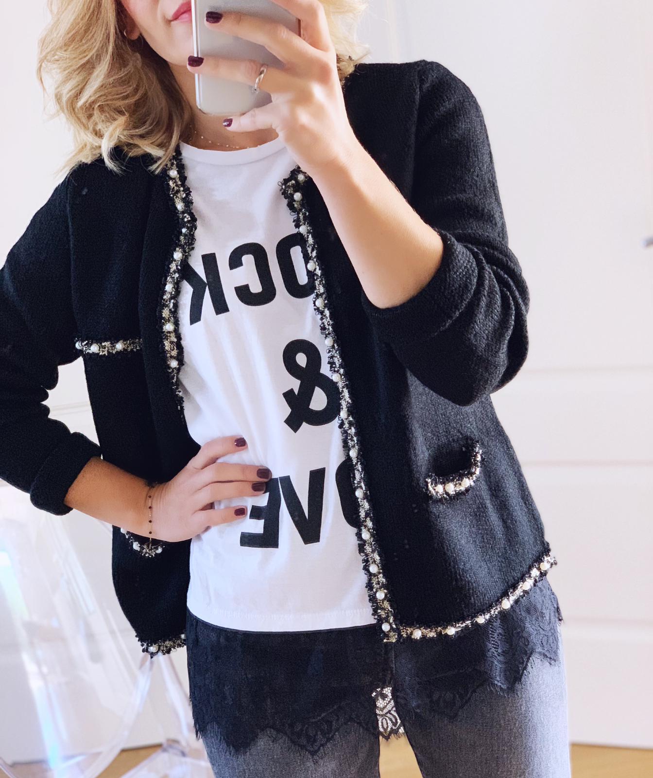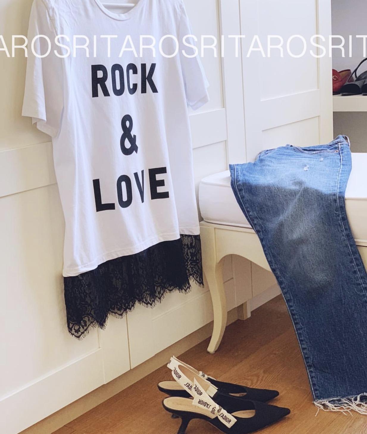 Camiseta de cuello redondo y manga corta con detalle encaje en el bajo.