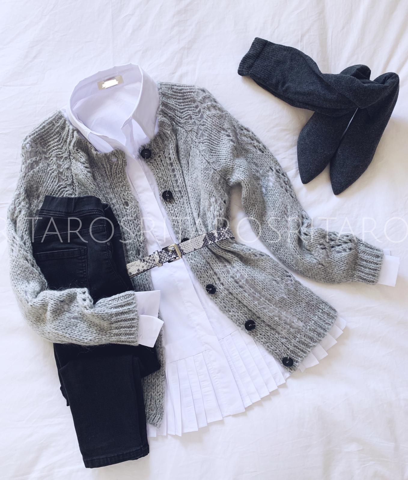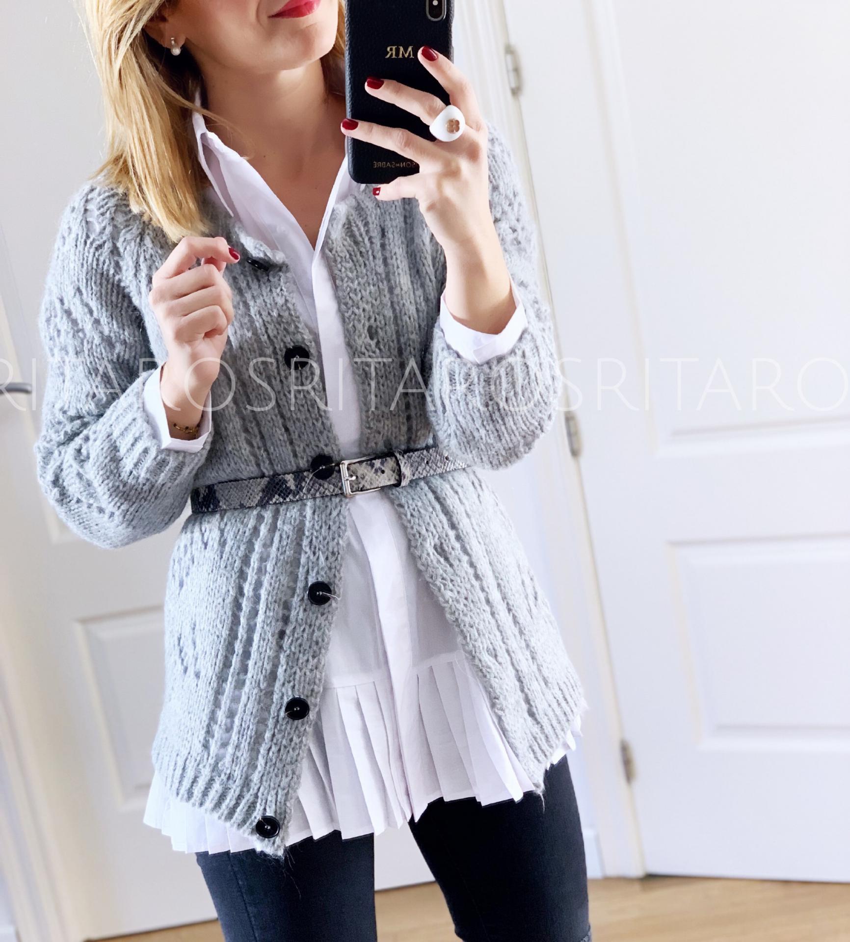 Chaqueta de punto troquelado cuello redondo y manga larga.