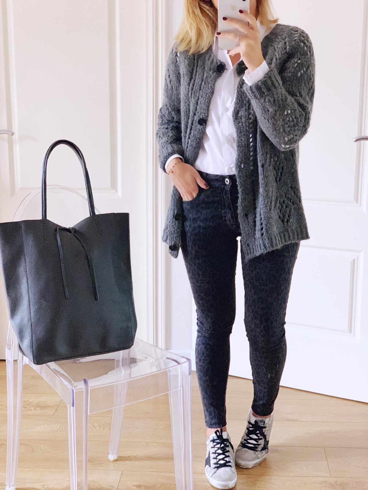 Pantalón pitillo de tiro medio estampado de leopardo.
