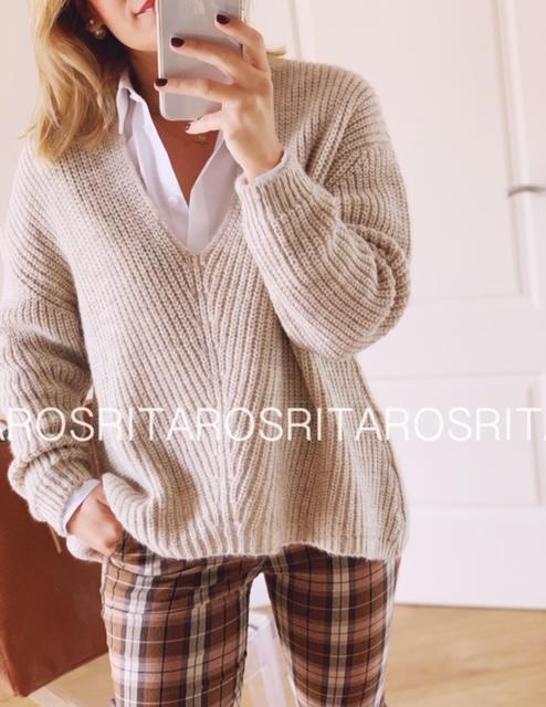 Jersey de punto escote en maxi pico y manga larga.