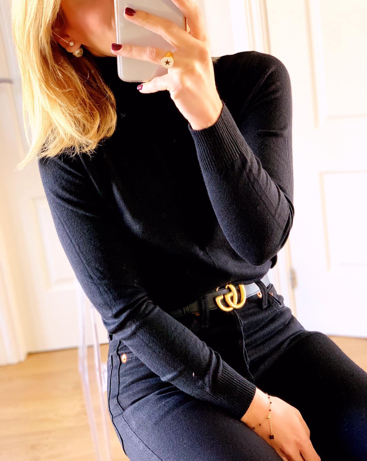 Jersey de punto fino cuello alto y manga larga.