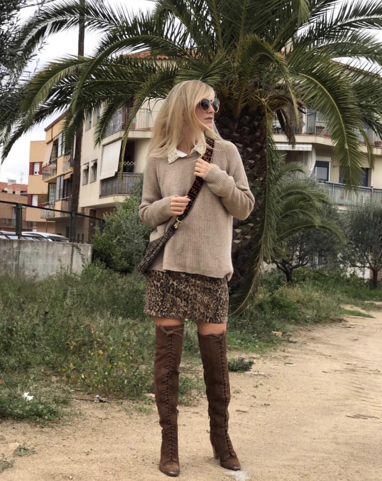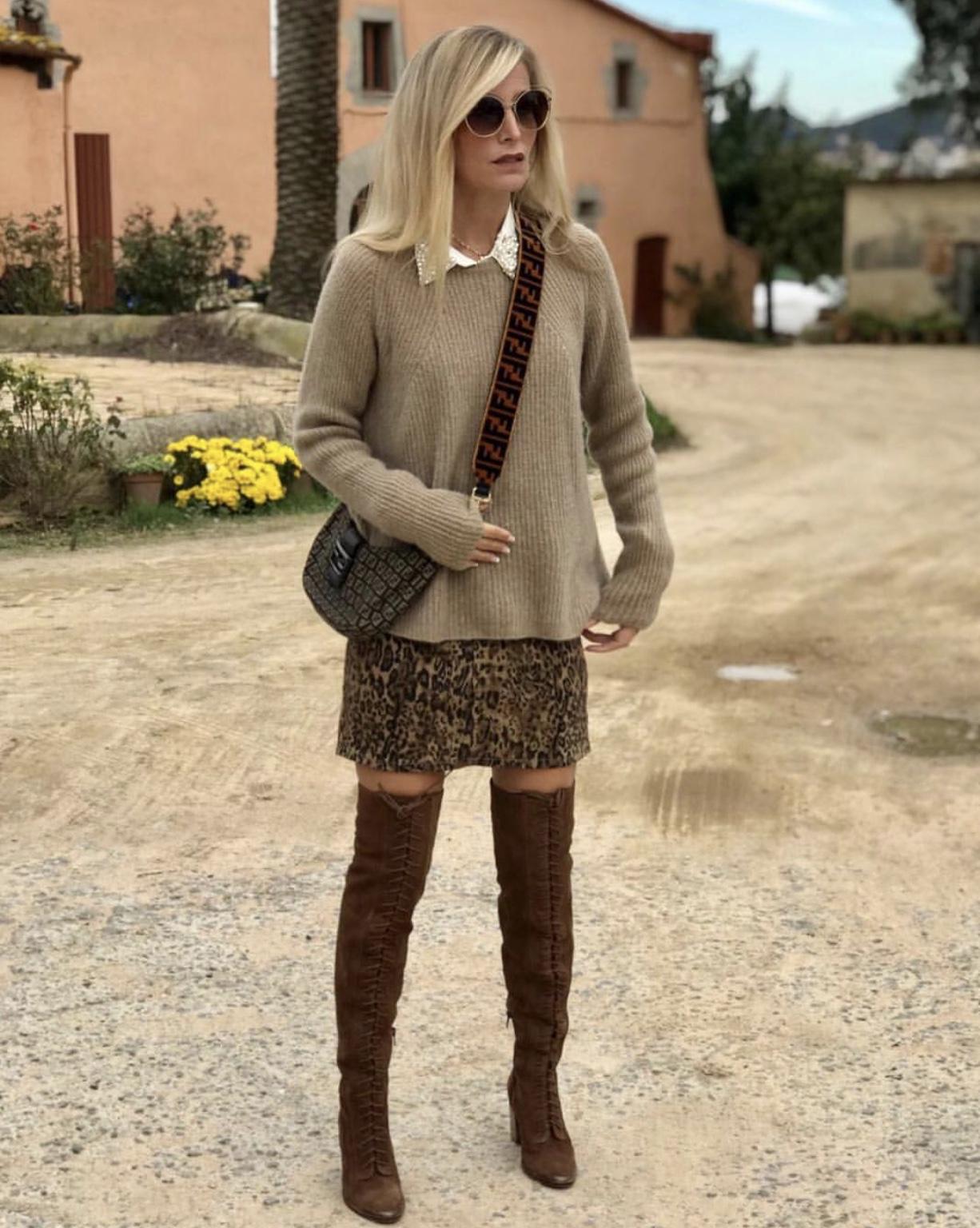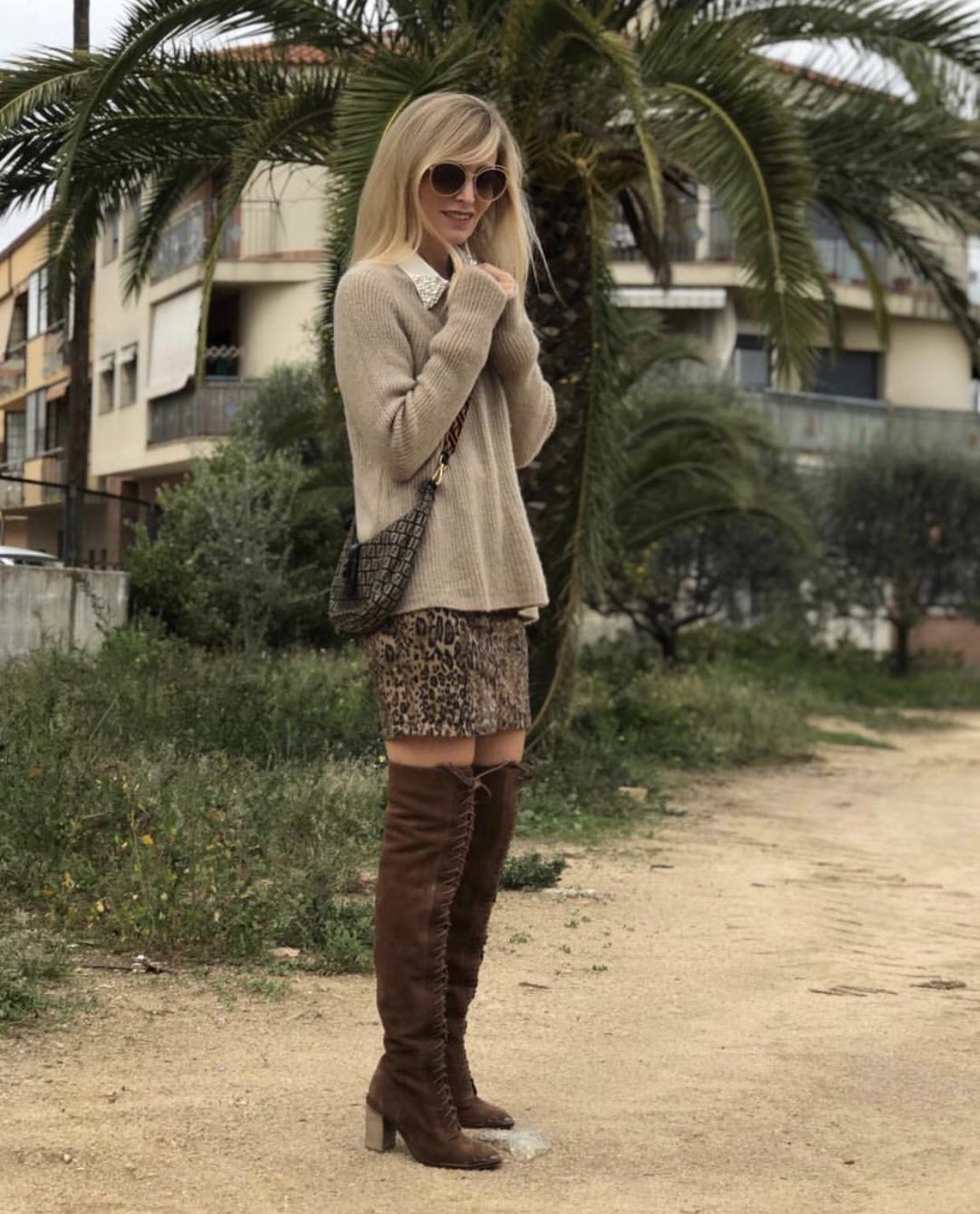 Falda corta estampada de leopardo, cinco bolsillos. Combínala con nuestro jersey Chocolat en color camel y te encantará el resultado