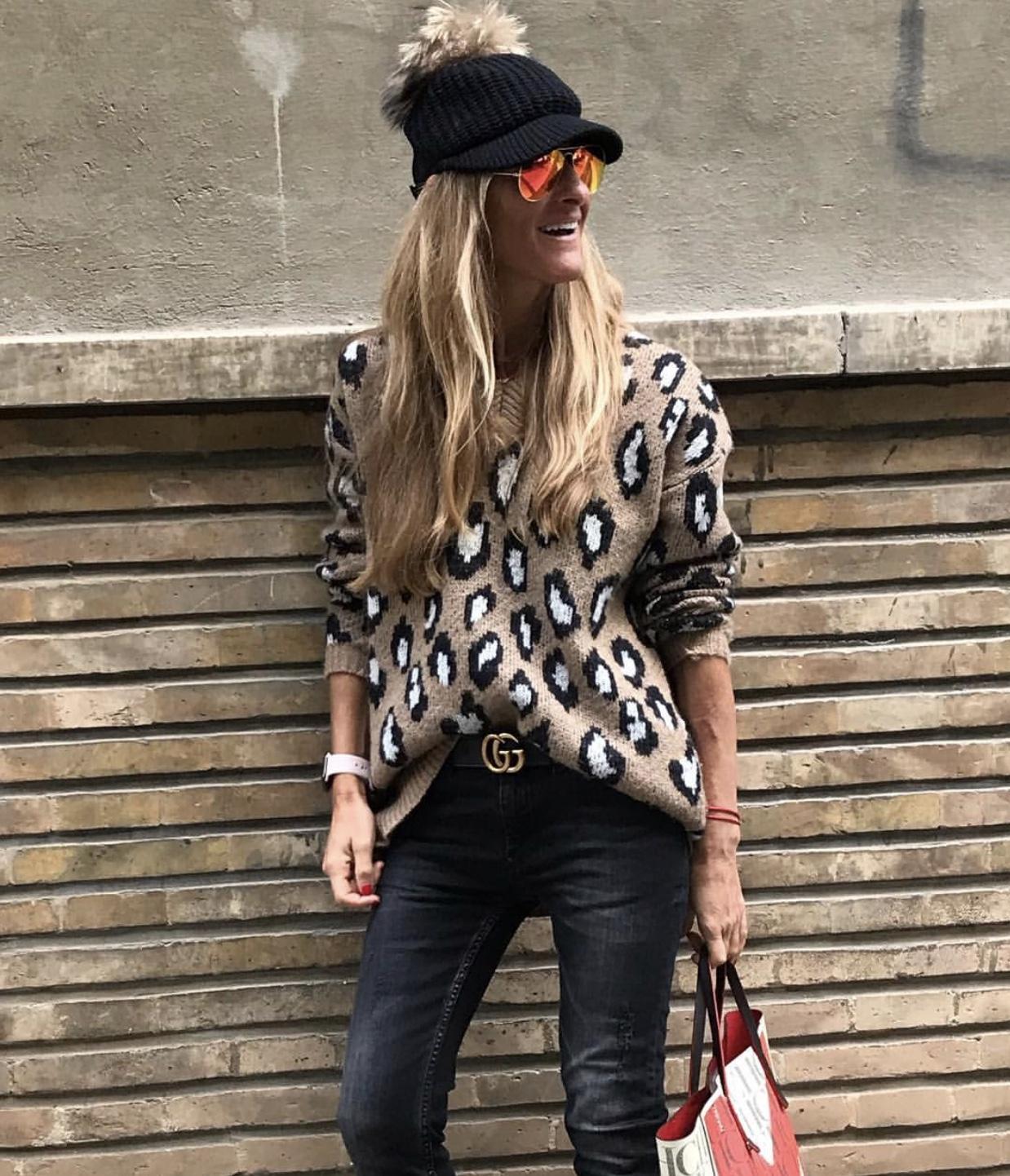Gorra de lana con pompón de pelo natural.