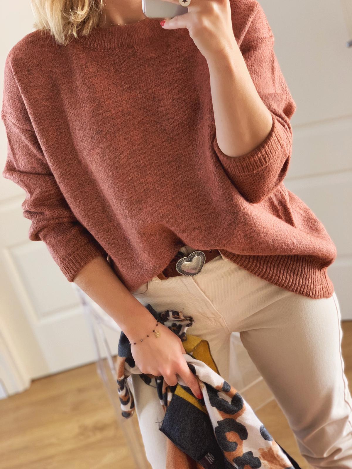 Jersey de cuello redondo y manga larga con un punto maravilloso.