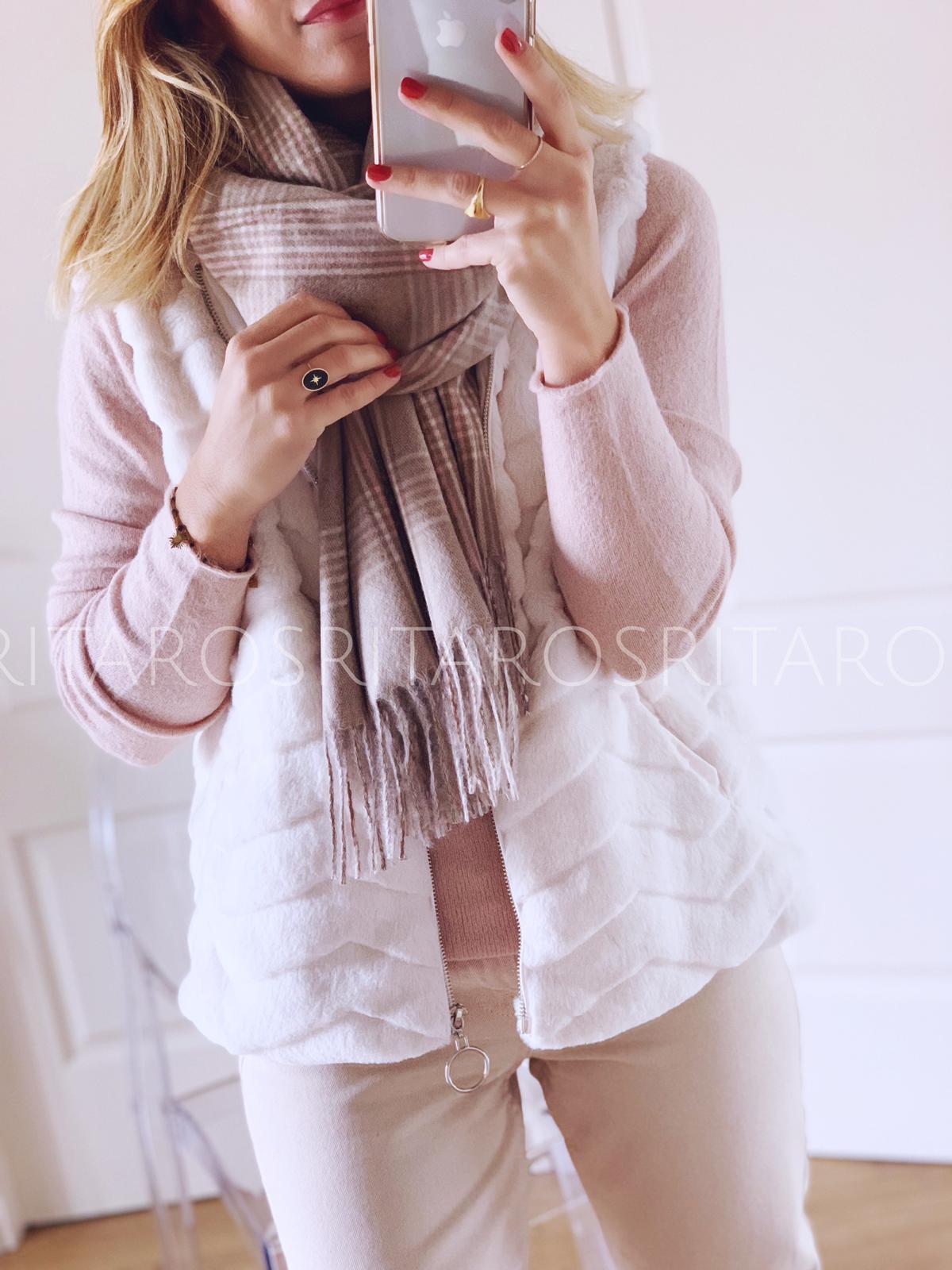 Una monada de bufanda de cashmere en tonos Beige blanco s/n h rosas. El tejido te enamorarà