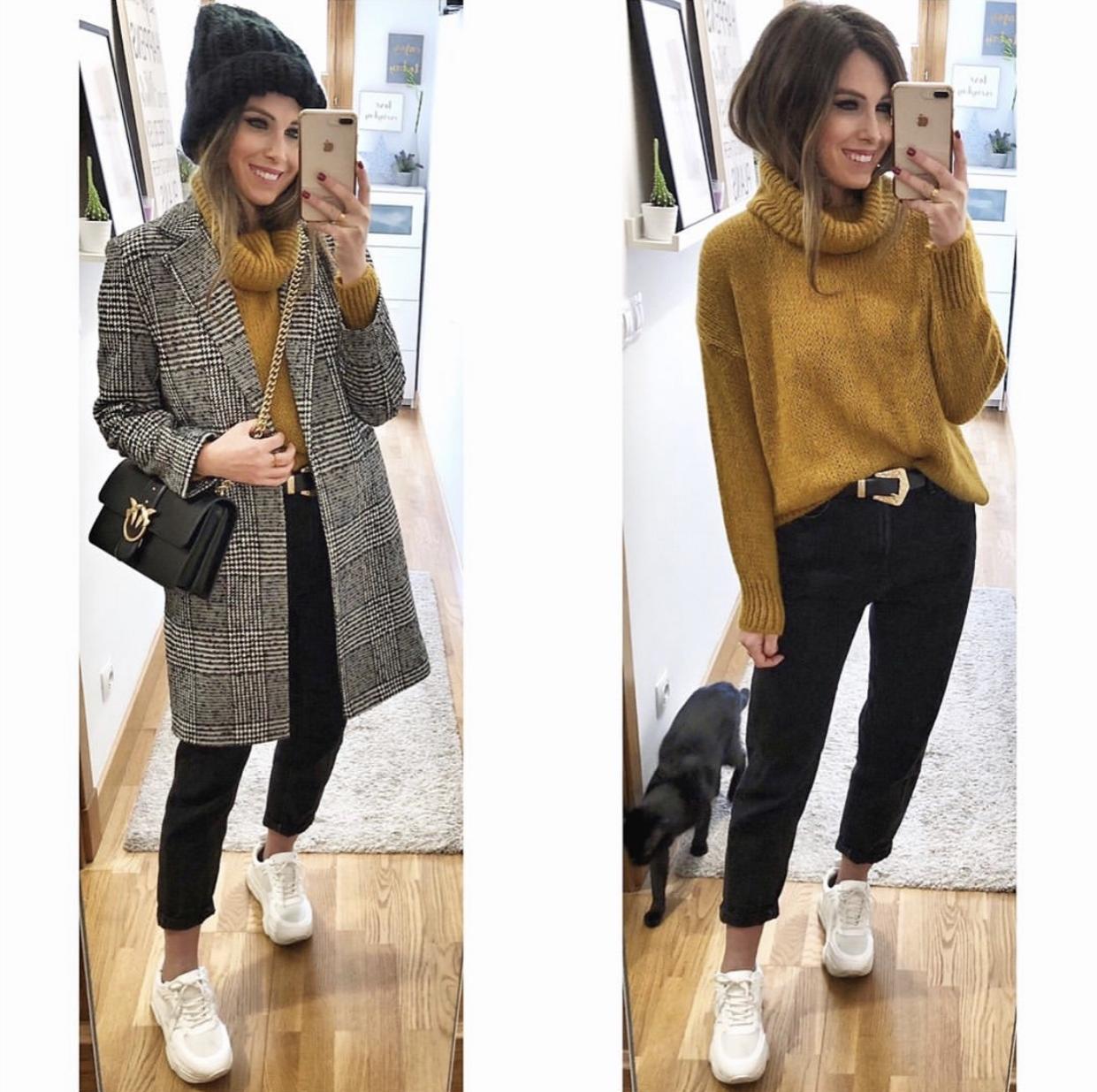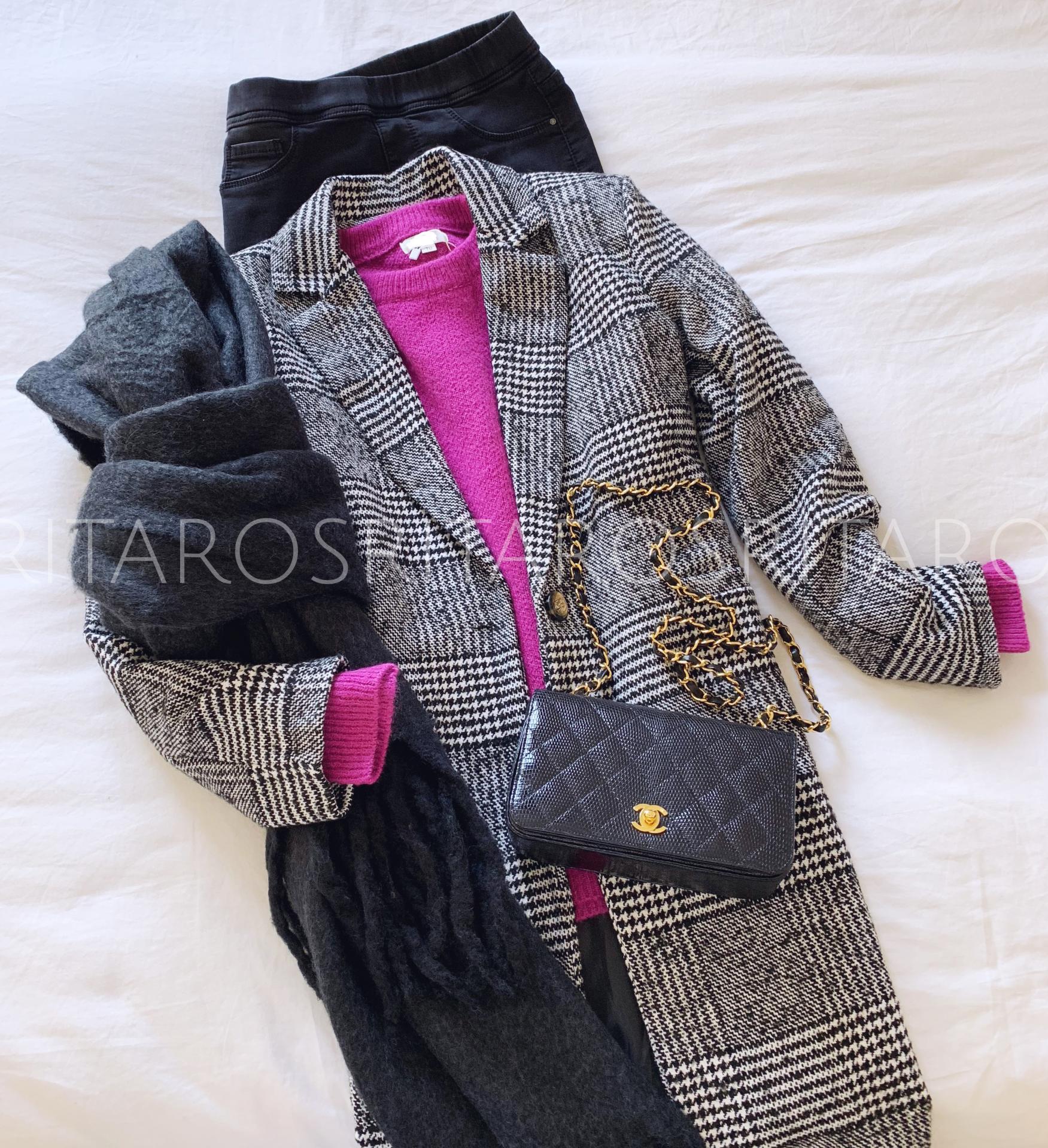 Abrigo con cuello y solapas, corte recto y manga larga estampado de cuadros. Un abrigo muy versátil que estiliza un montón.