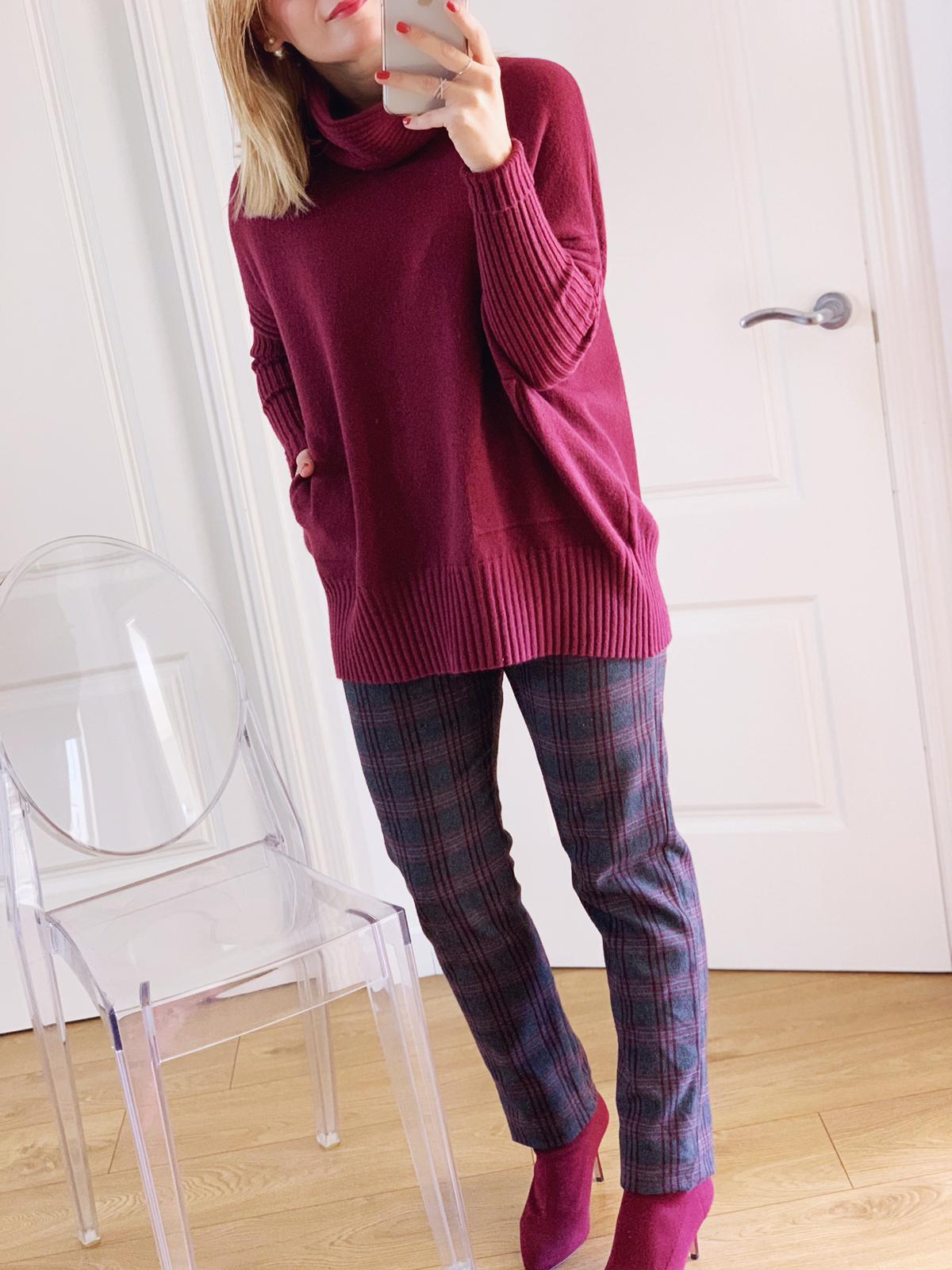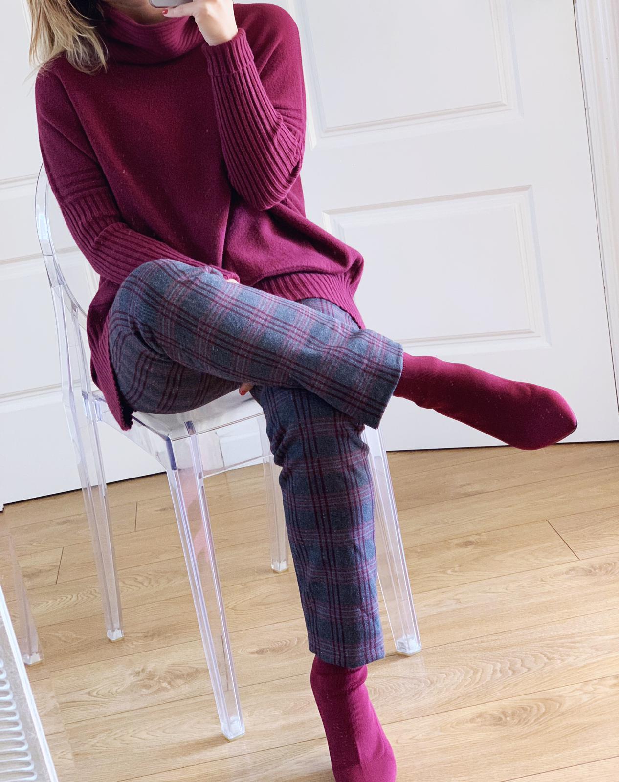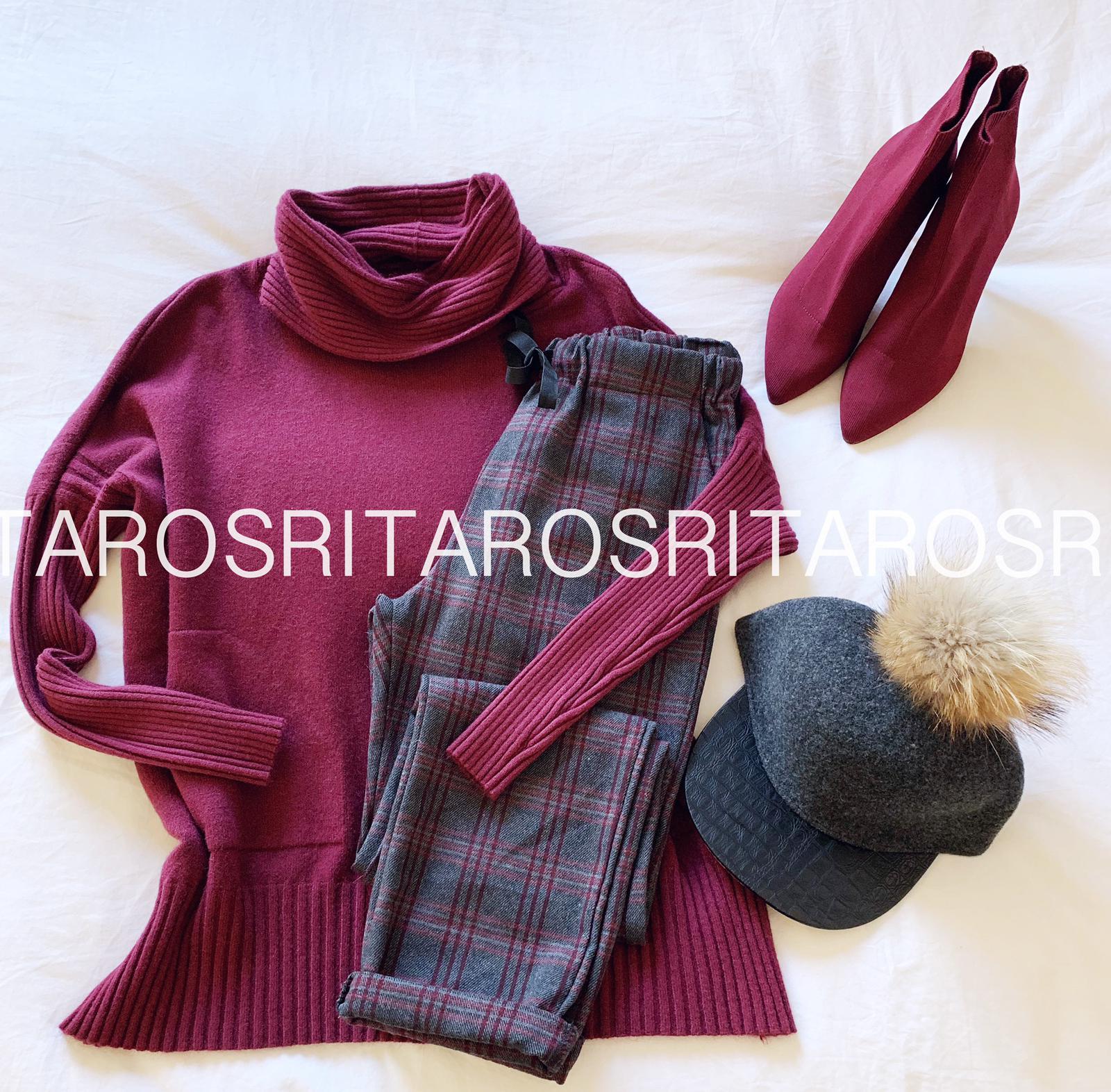 Pantalón largo con cintura elástica estampado de cuadros. Combínalo con nuestro jersey Siena en color granate y te encantará el resultado.