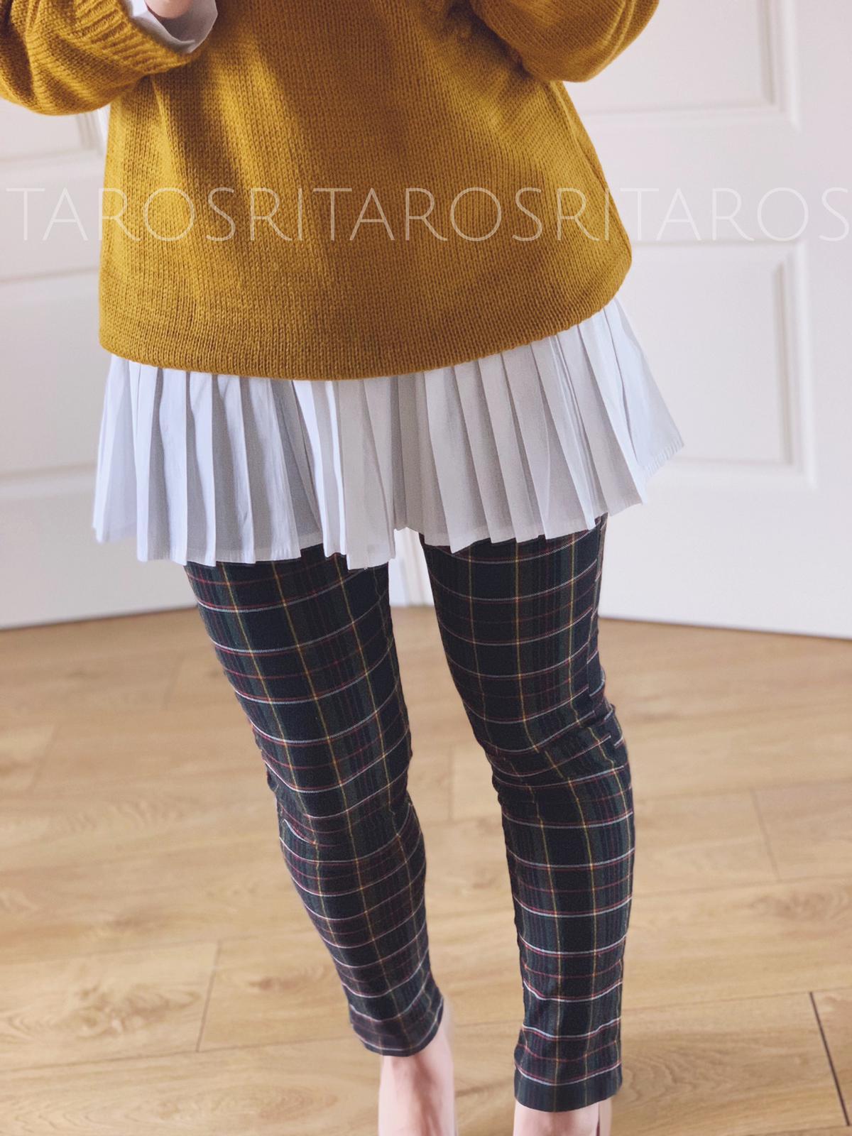 Pantalón pitillo estampado de cuadros. Bolsillos delanteros y falso bolsillo de vivo en espalda.