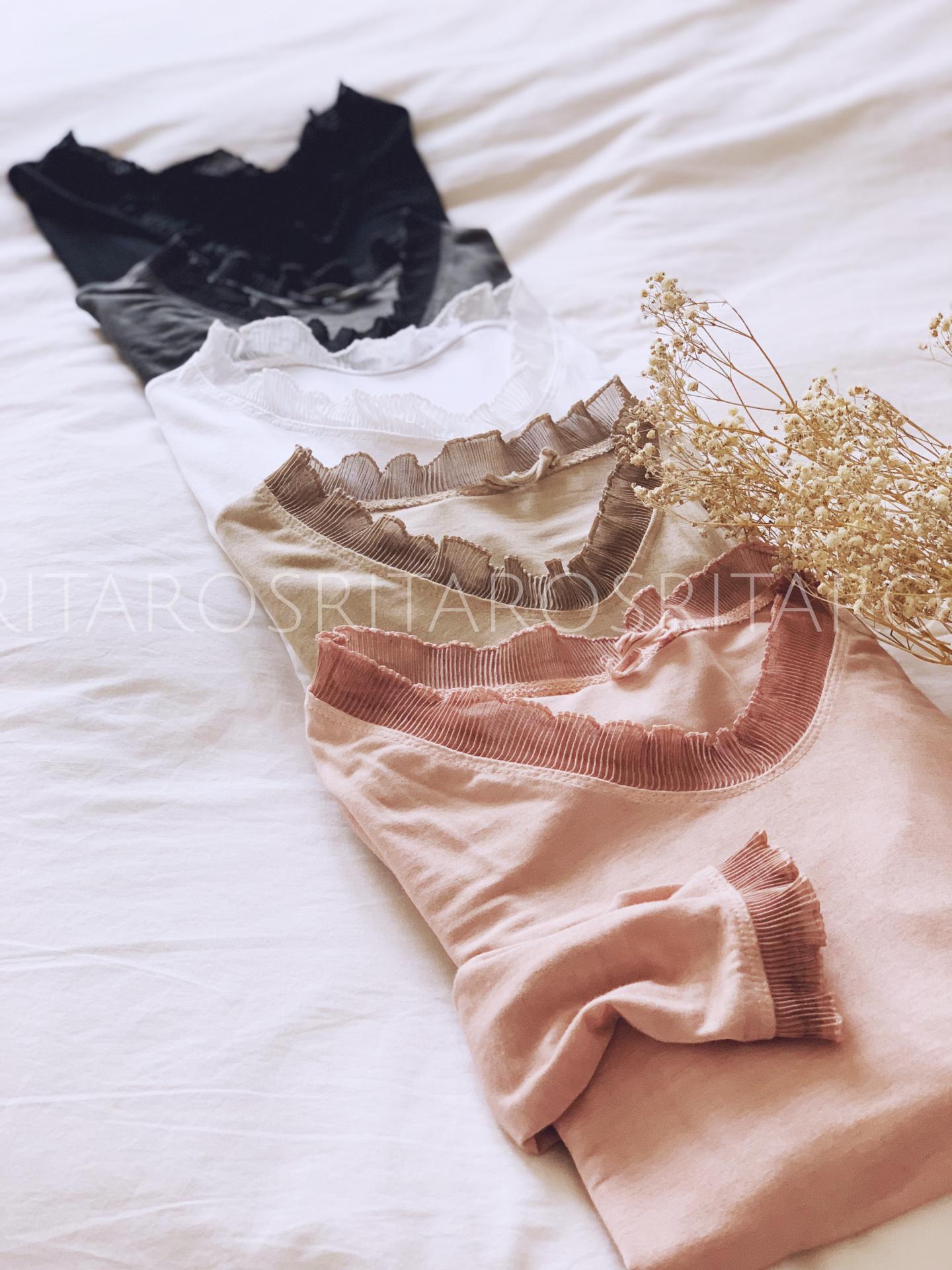 Preciosas camisetas ligeras de manga larga con un poco de elástico que se adaptan genial con detalle en mangas y cuello.