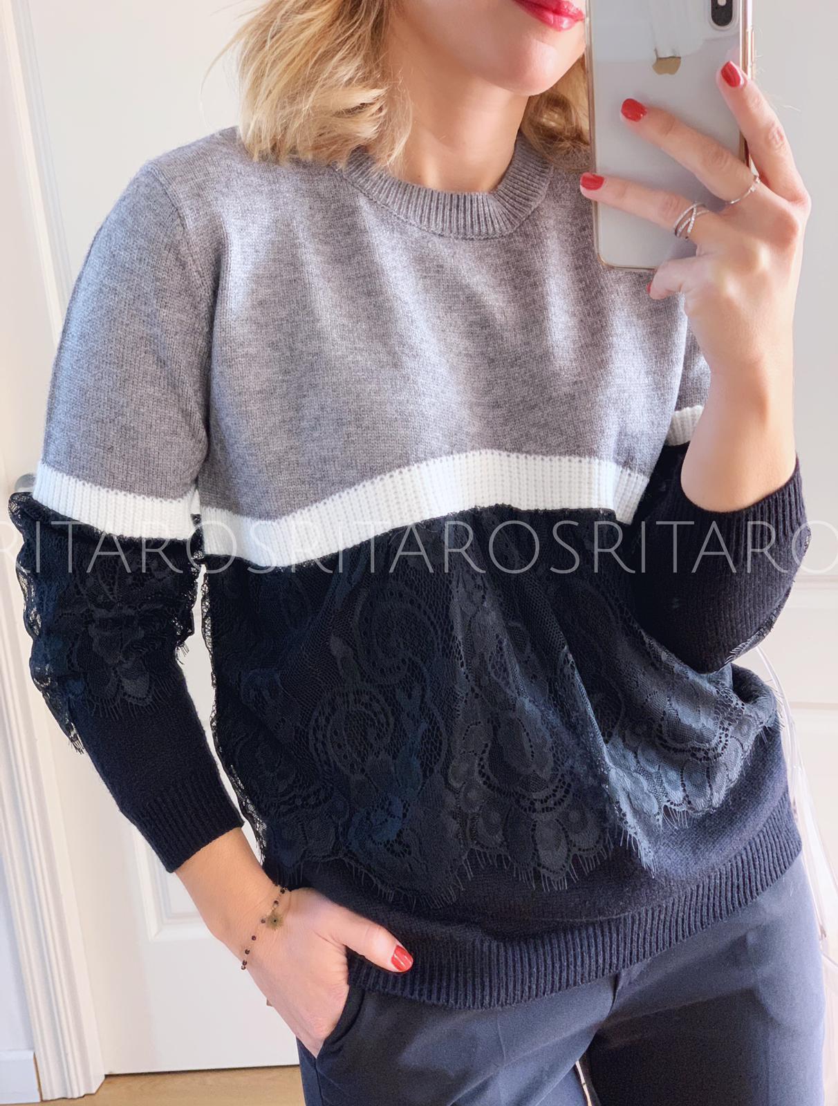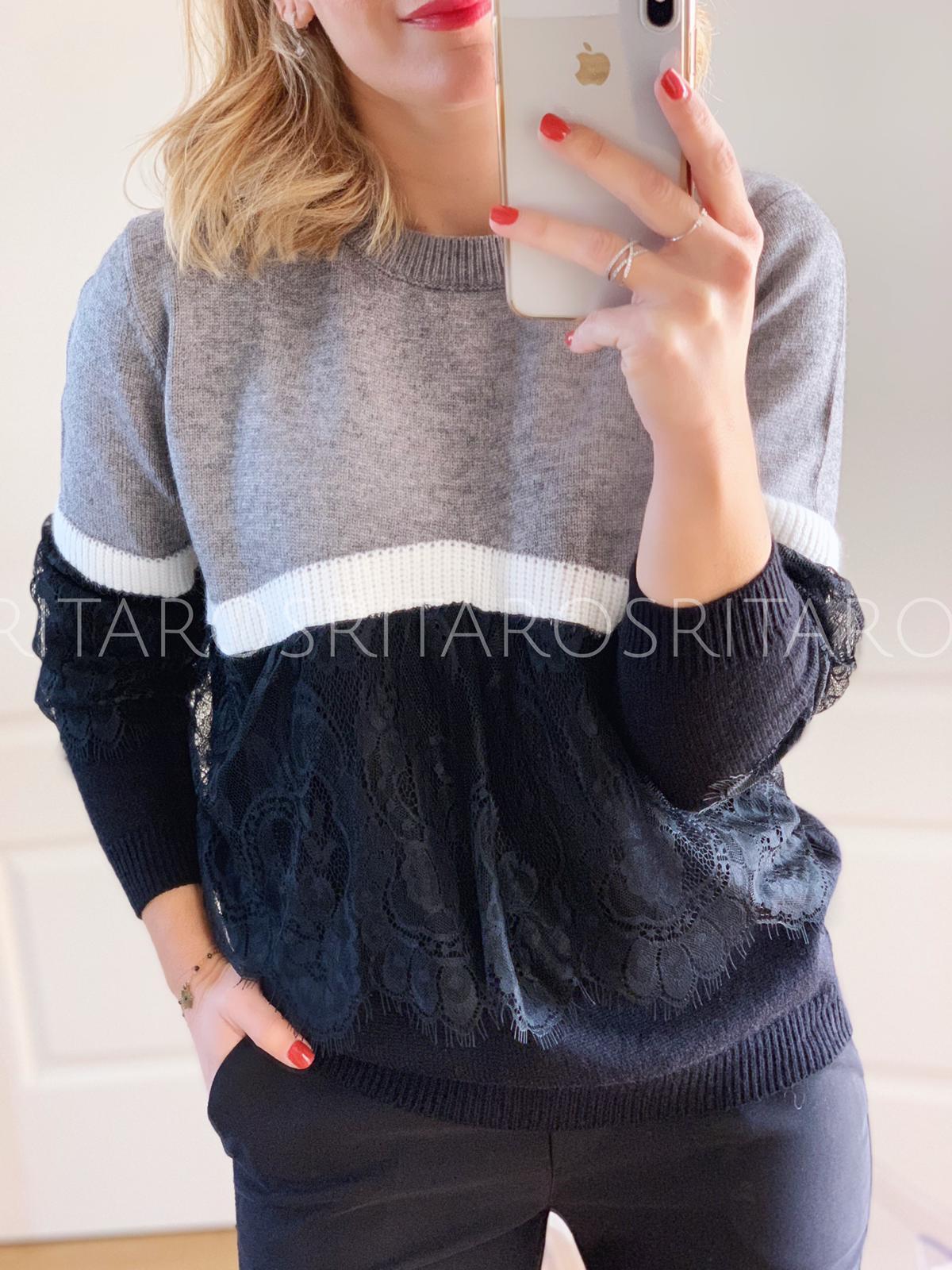 Jersey de cuello redondo y manga larga con detalle encaje en frontal y mangas. El tejido es fantástico.