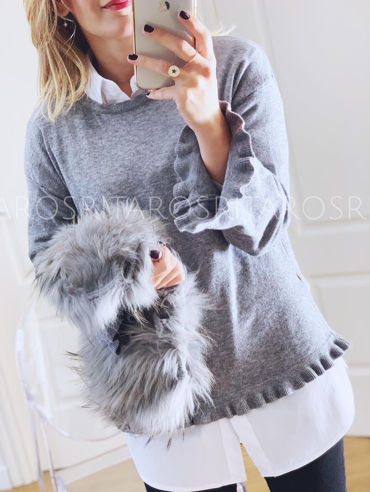 Precioso cuello de pelo natural de marmota a modo de buf redondo, tricotado en punto de pelo natural.