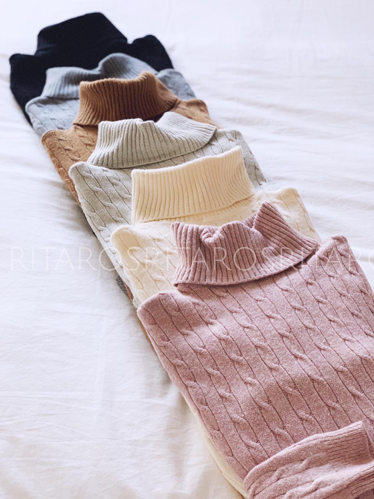 Jersey de punto de cuello alto y manga larga con detalle bajo acabado en ondas. Un jersey súper suave con un tejido maravilloso.